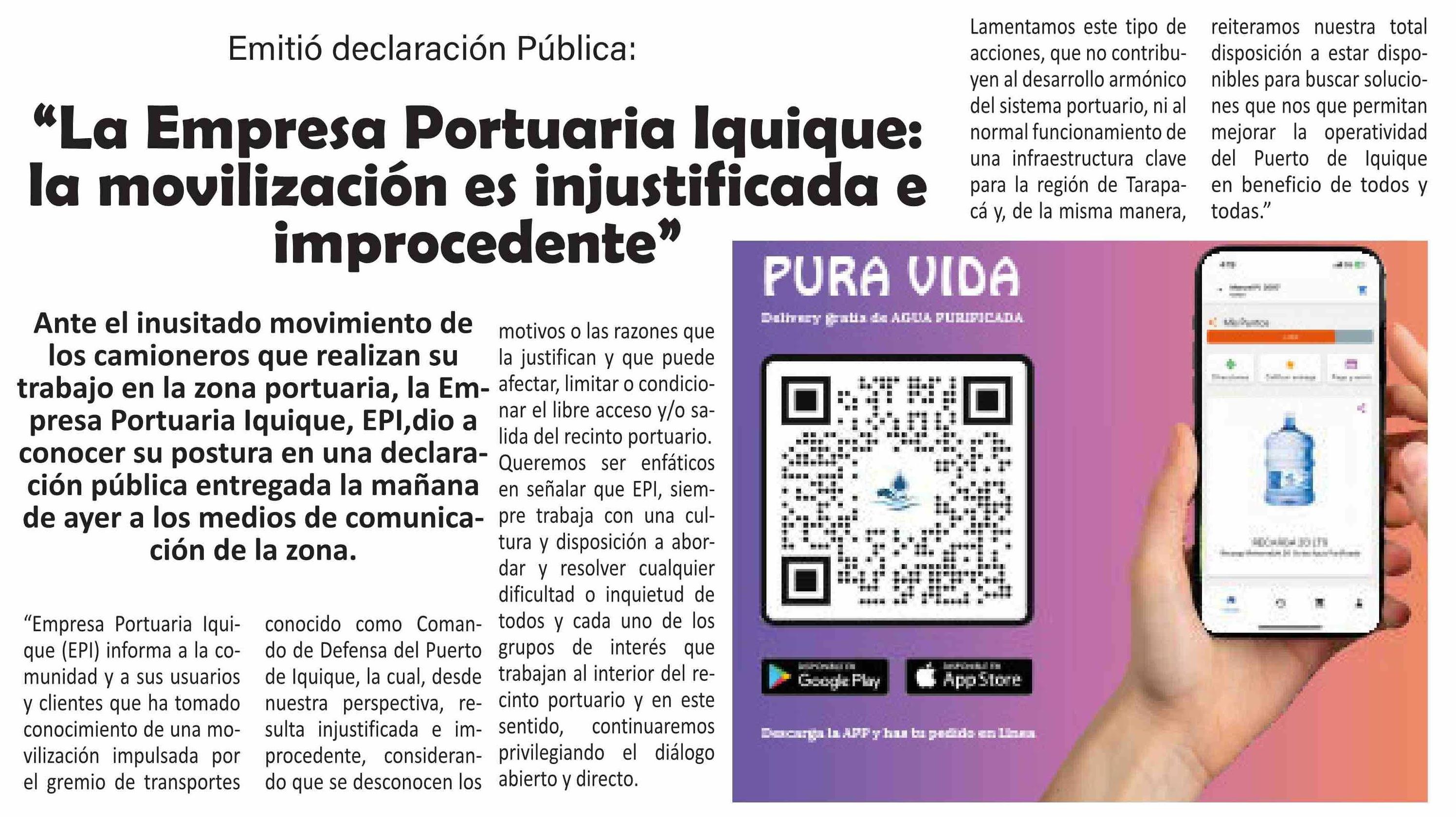 “La Empresa Portuaria Iquique: la movilización es injustificada e improcedente”