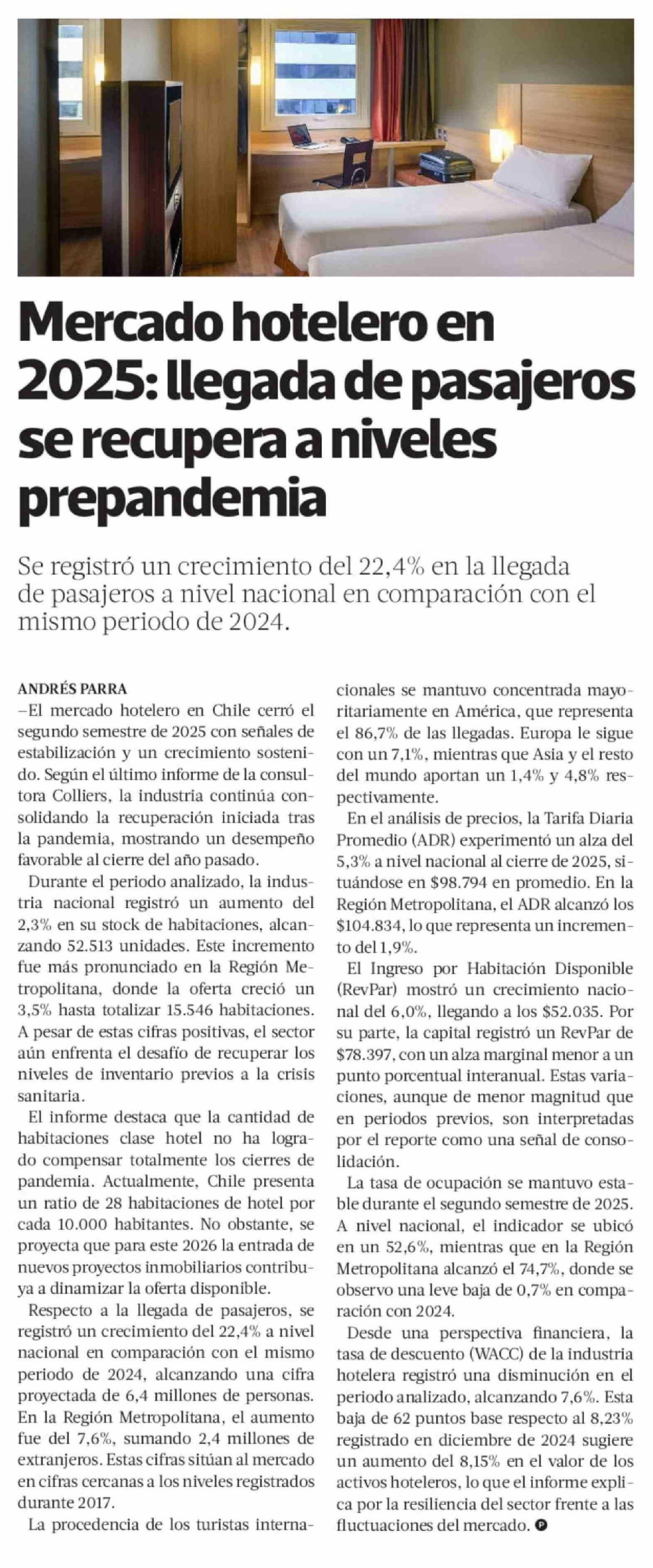 Mercado hotelero en 2025: llegada de pasajeros se recupera a niveles prepandemia