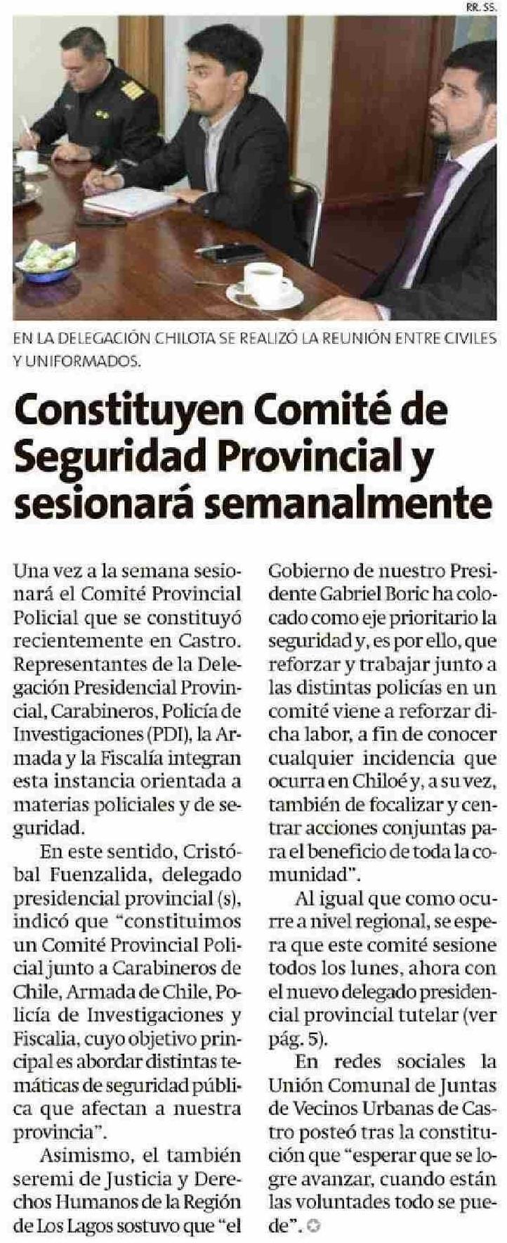 Constituyen Comité de Seguridad Provincial y sesionará semanalmente