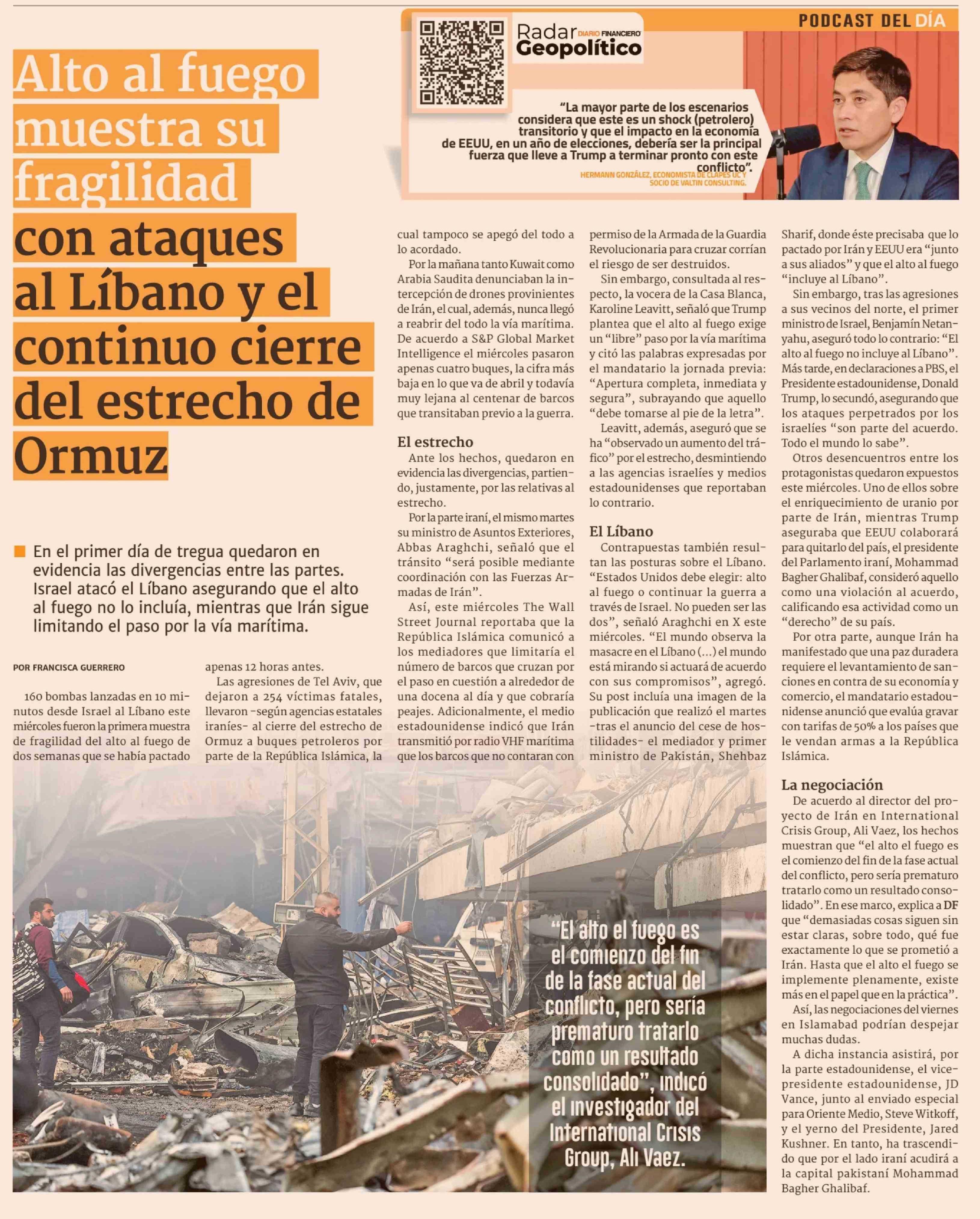 Alto al fuego muestra su fragilidad con ataques al Líbano y el continuo cierre del estrecho de Ormuz