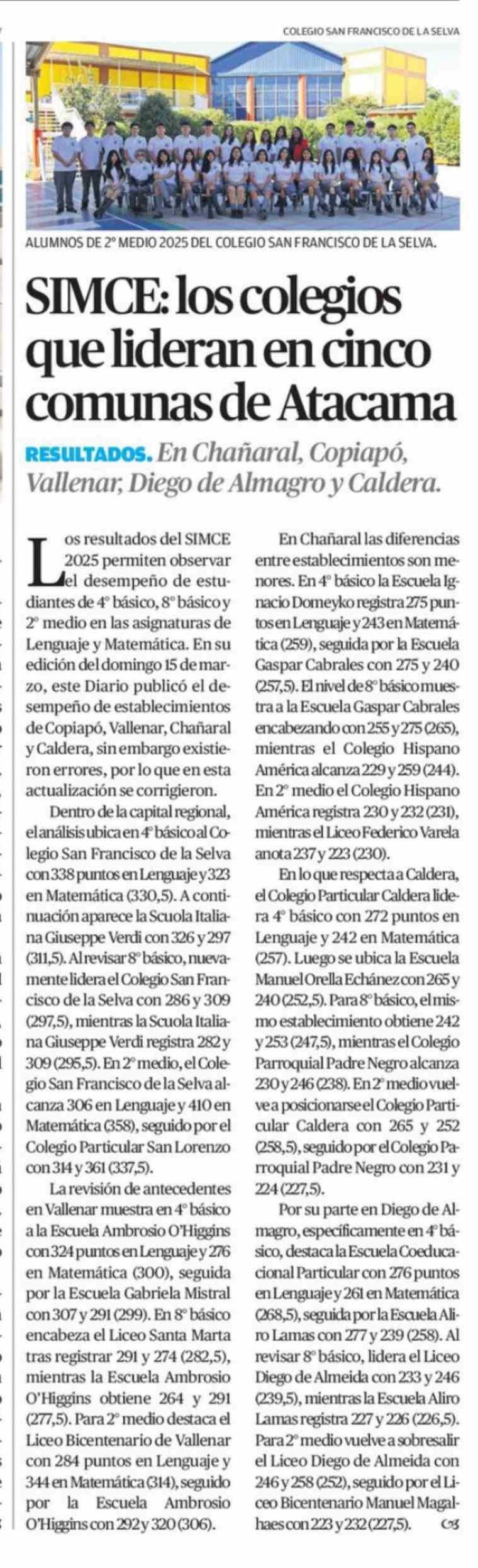 SIMCE: los colegios que lideran en cinco comunas de Atacama