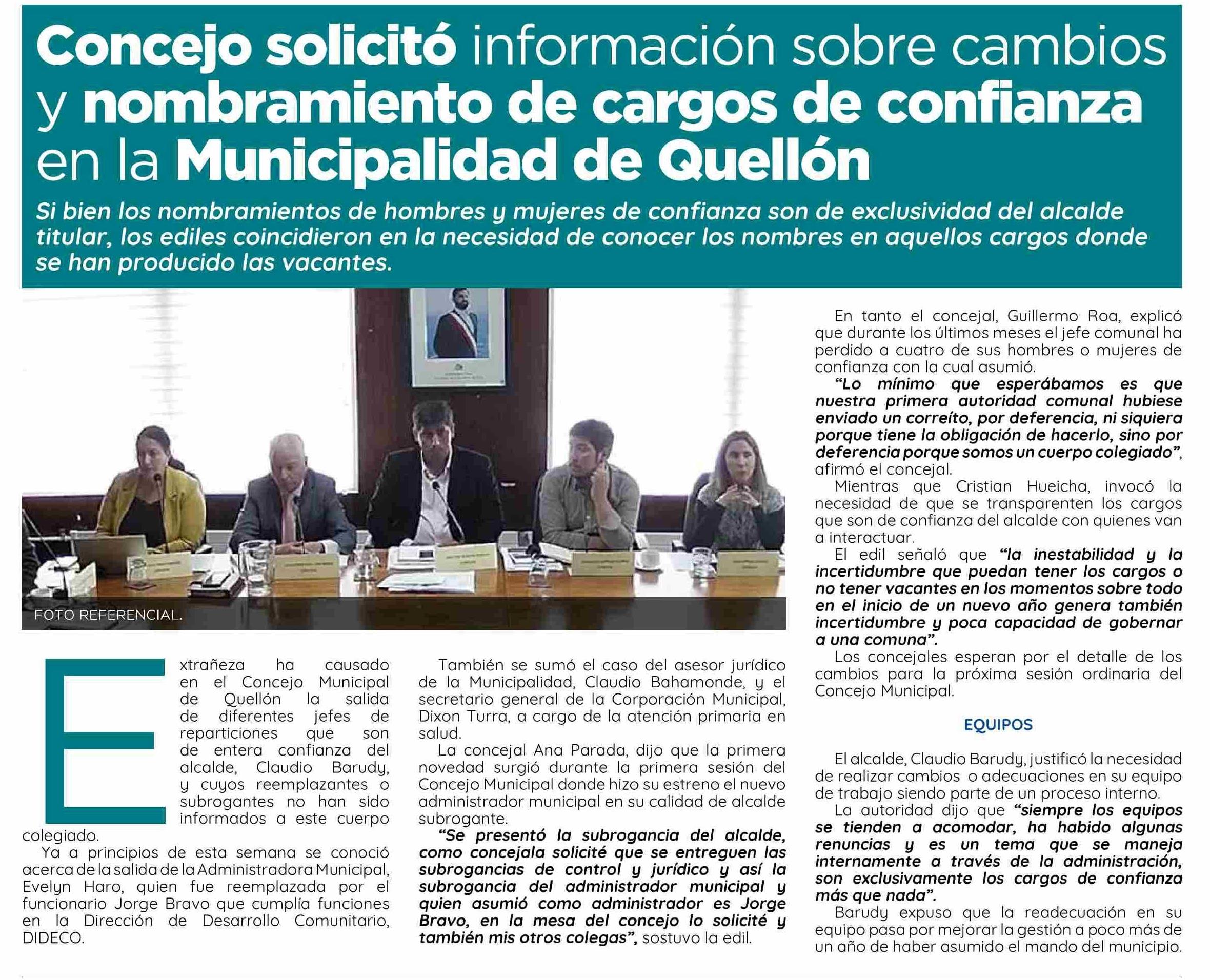 Concejo solicitó información sobre cambios y nombramiento de cargos de confianza en la Municipalidad de Quellón