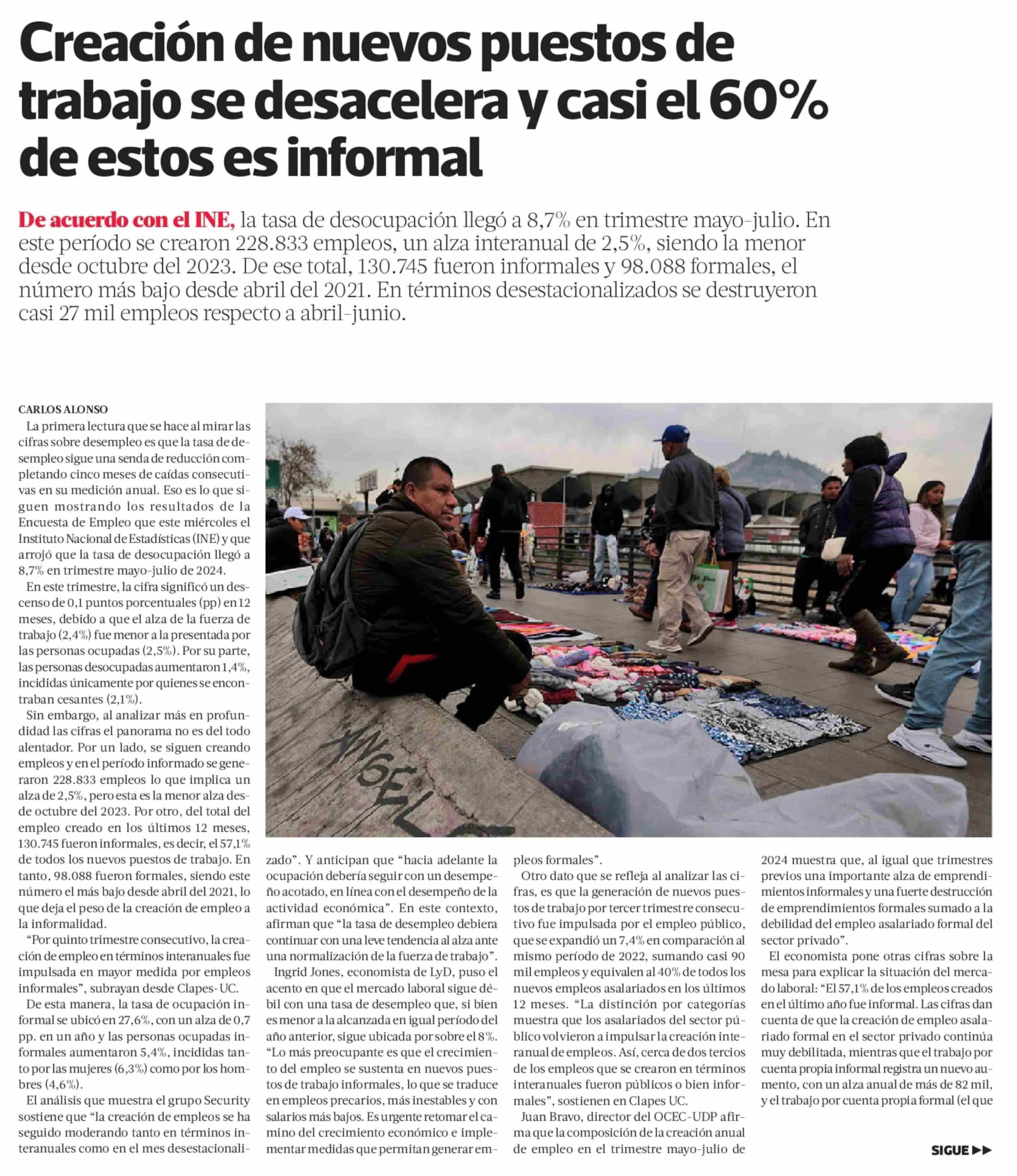 Creación de nuevos puestos de trabajo se desacelera y casi el 60% de estos es informal