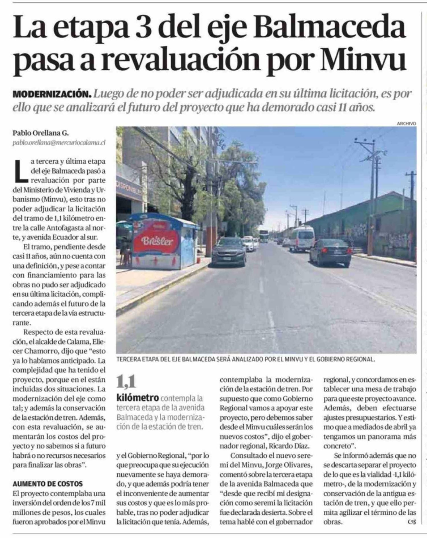 La etapa 3 del eje Balmaceda pasa a revaluación por Minvu