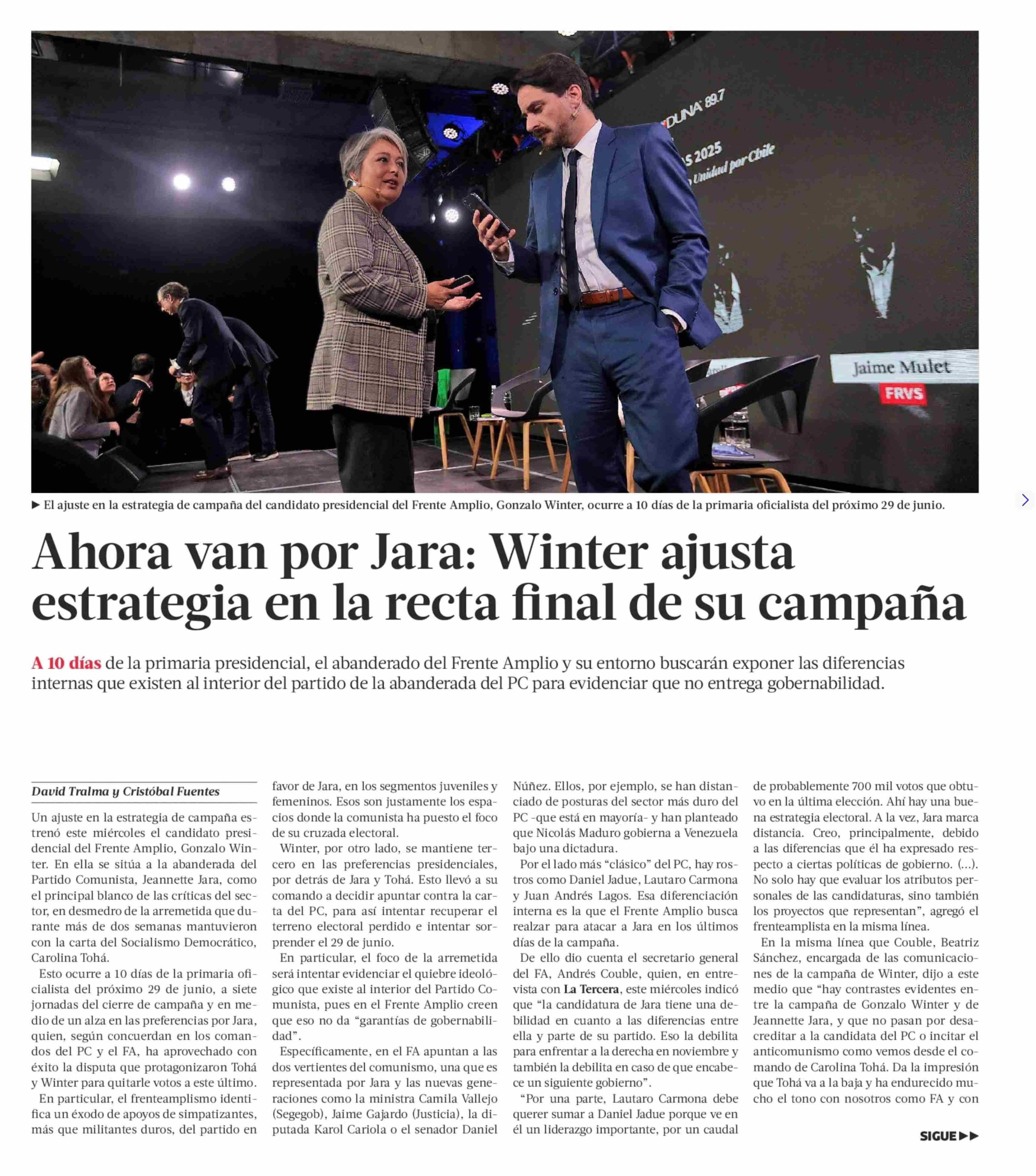 Ahora van por Jara: Winter ajusta estrategia en la recta final de su campaña