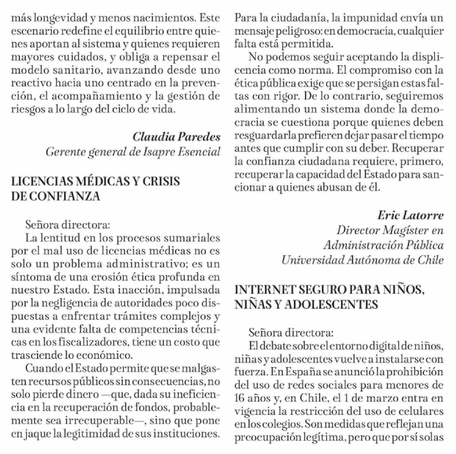 Cartas: LICENCIAS MÉDICAS Y CRISIS DE CONFIANZA