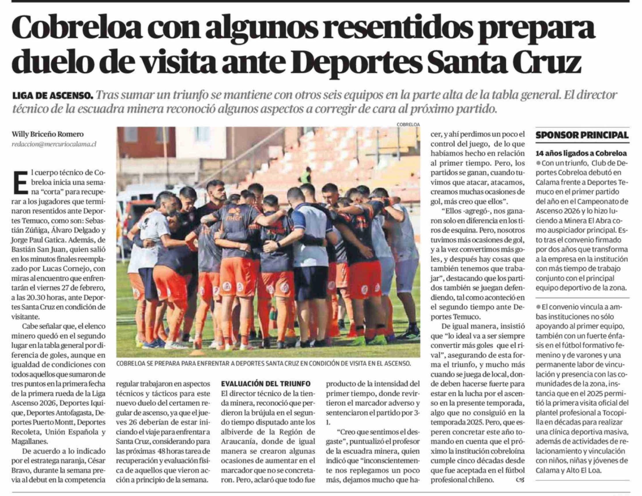 Título: Cobreloa con algunos resentidos prepara duelo de visita ante Deportes Santa Cruz