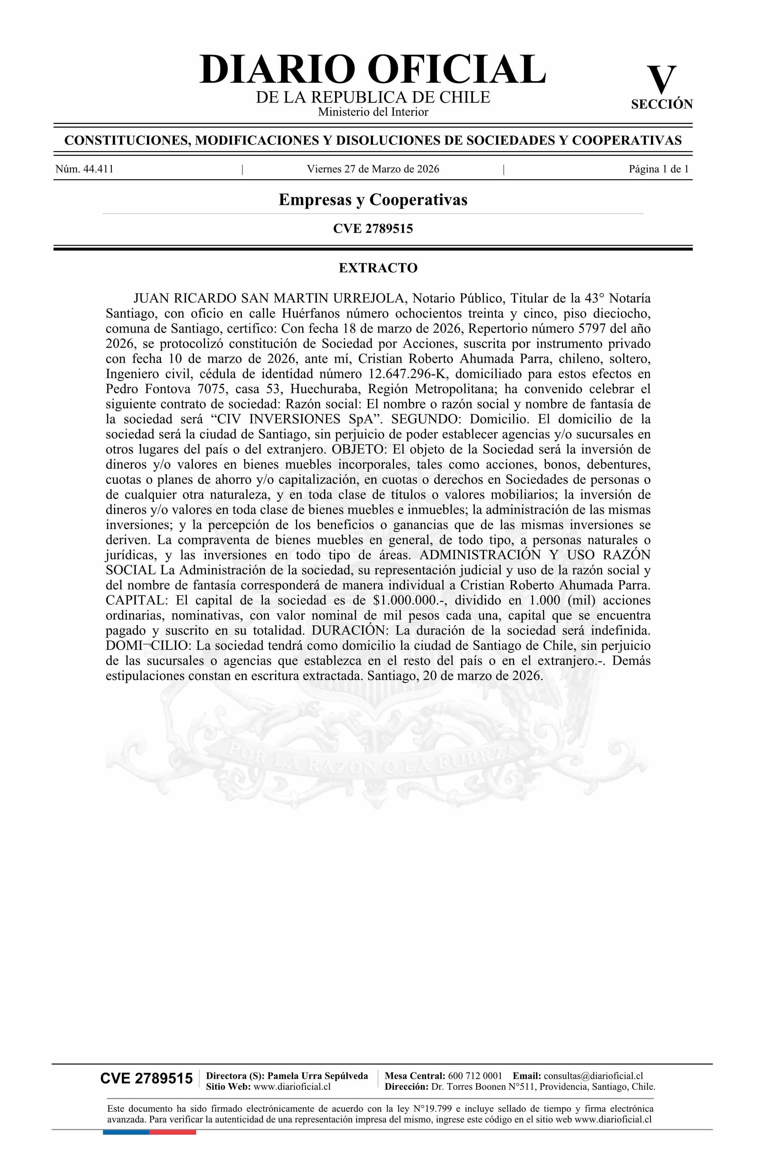 Diario Oficial Edición Electrónica (Diario Oficial de Chile - 5 Empresas Y Cooper)