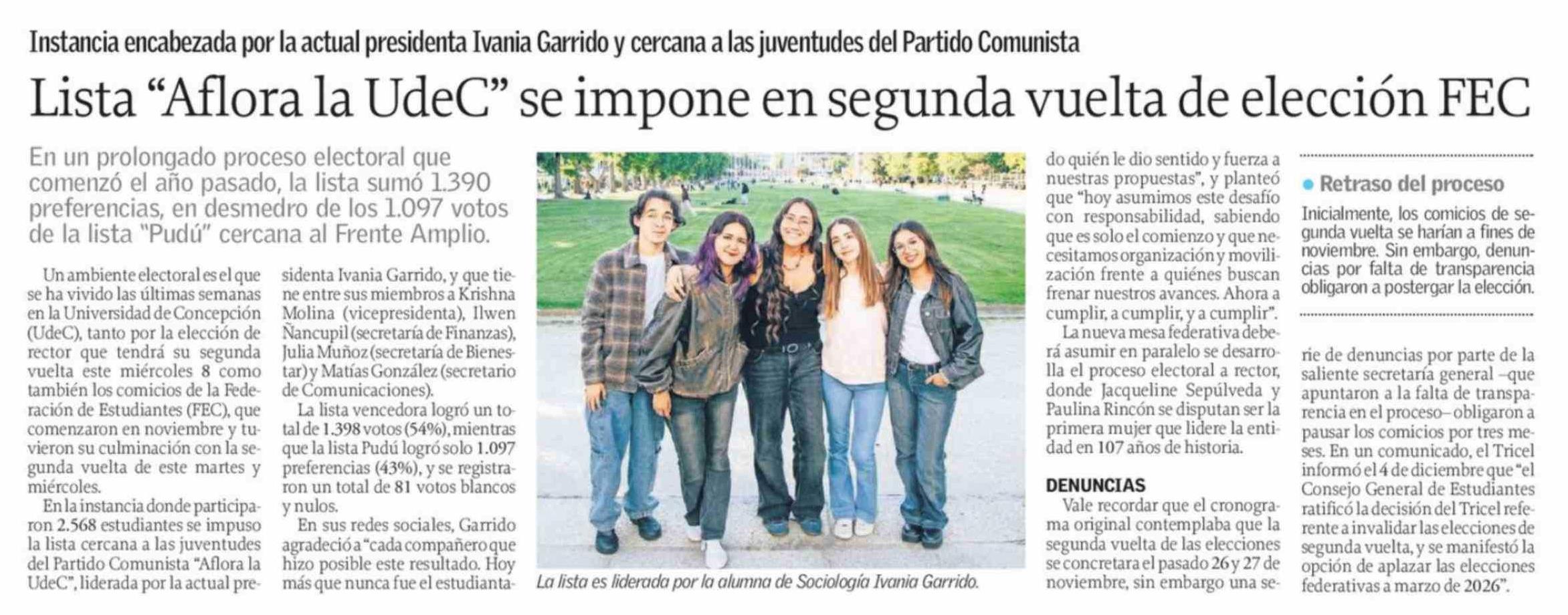 Lista "Aflora la UdeC" se impone en segunda vuelta de elección FEC