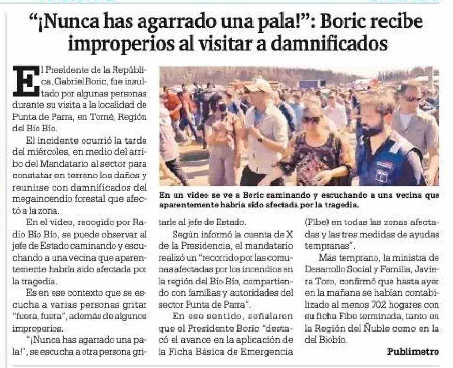 "¡Nunca has agarrado una pala!": Boric recibe improperios al visitar a damnificados