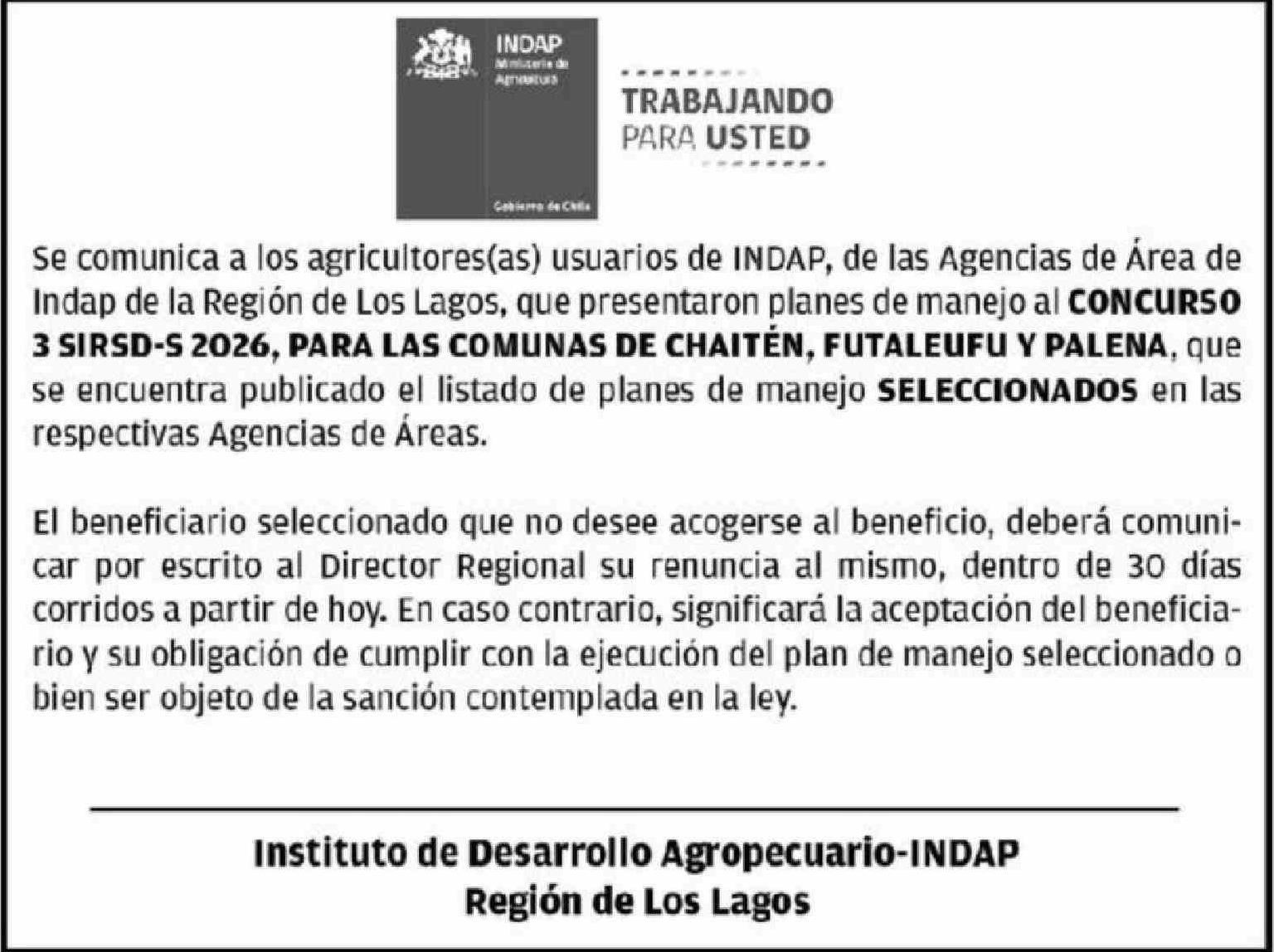 Fecha: 20-04-2026 Sector: Extractos Región: Región de Los Lagos