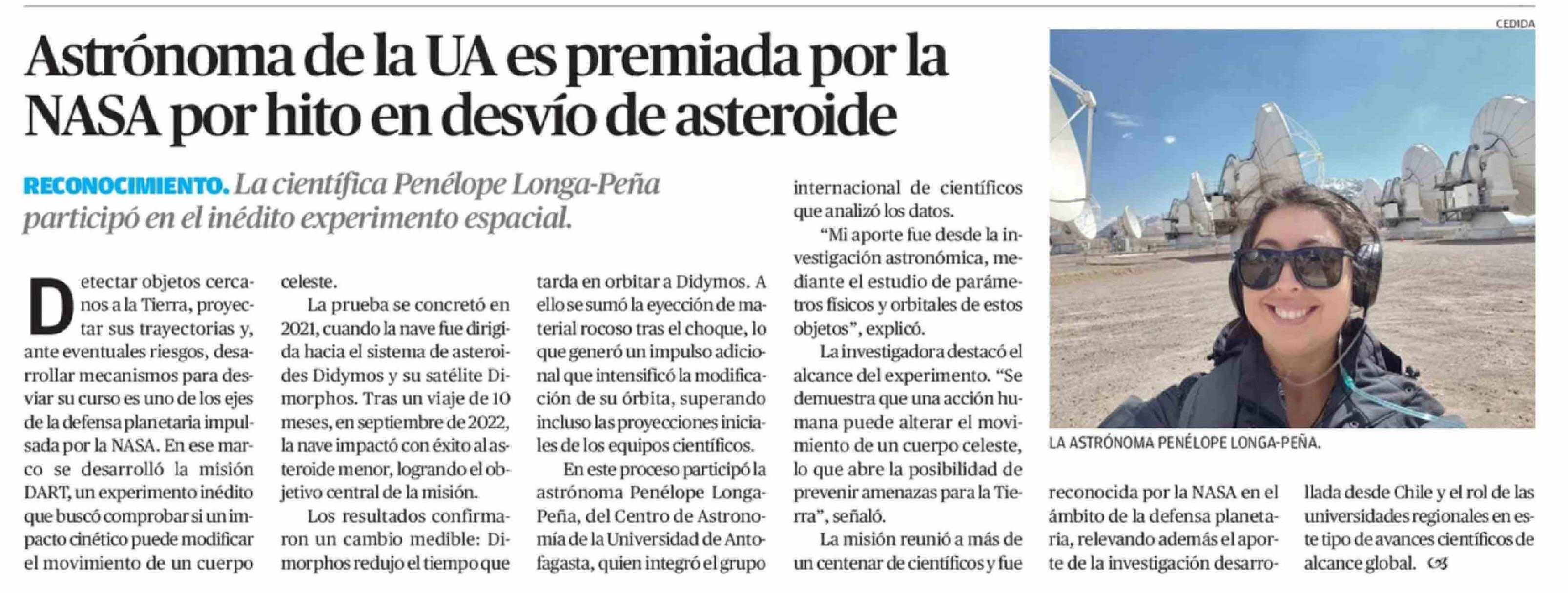 Astrónoma de la UA es premiada por la NASA por hito en desvío de asteroide