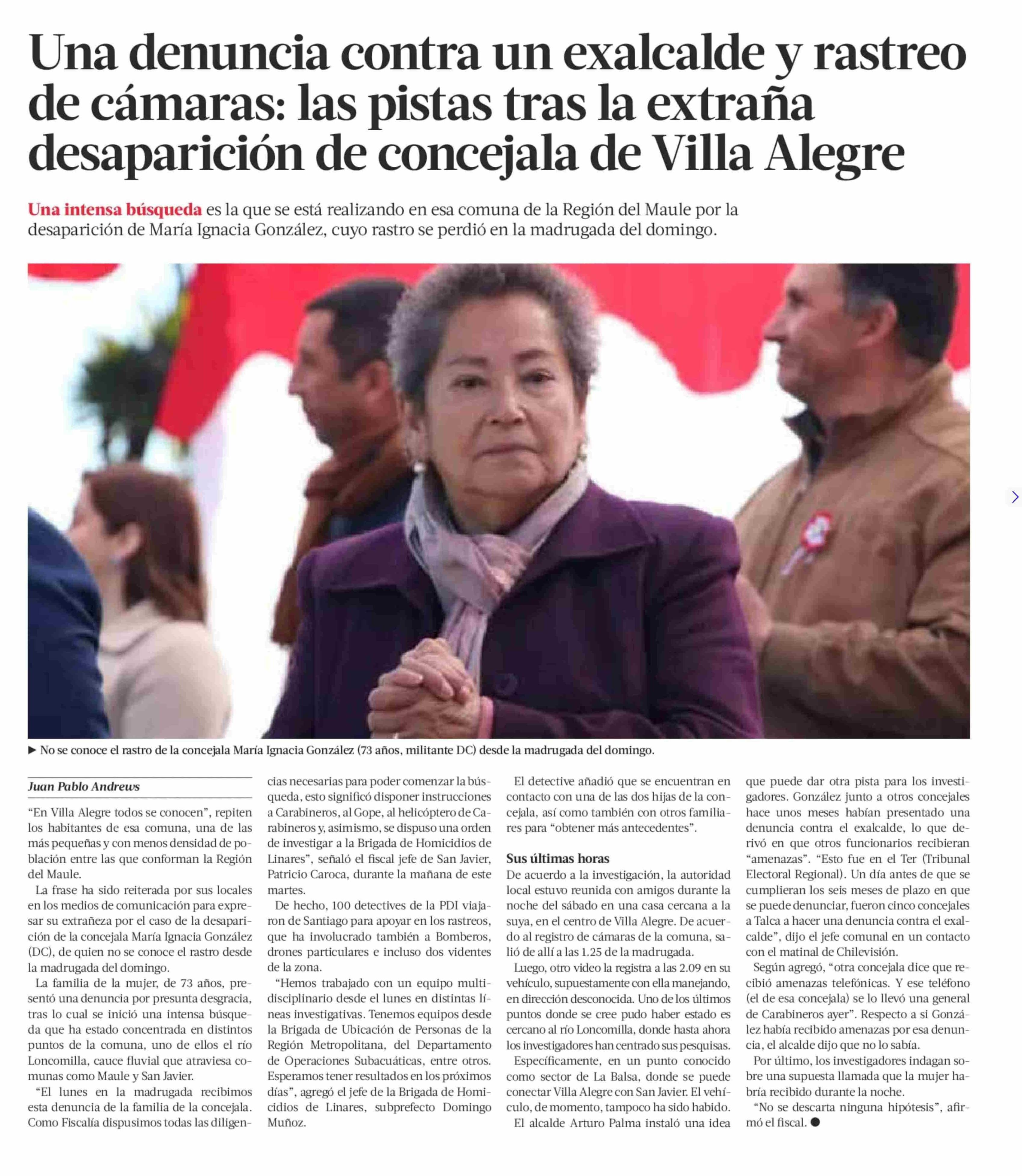 Una denuncia contra un exalcalde y rastreo de cámaras: las pistas tras la extraña desaparición de concejala de Villa Alegre