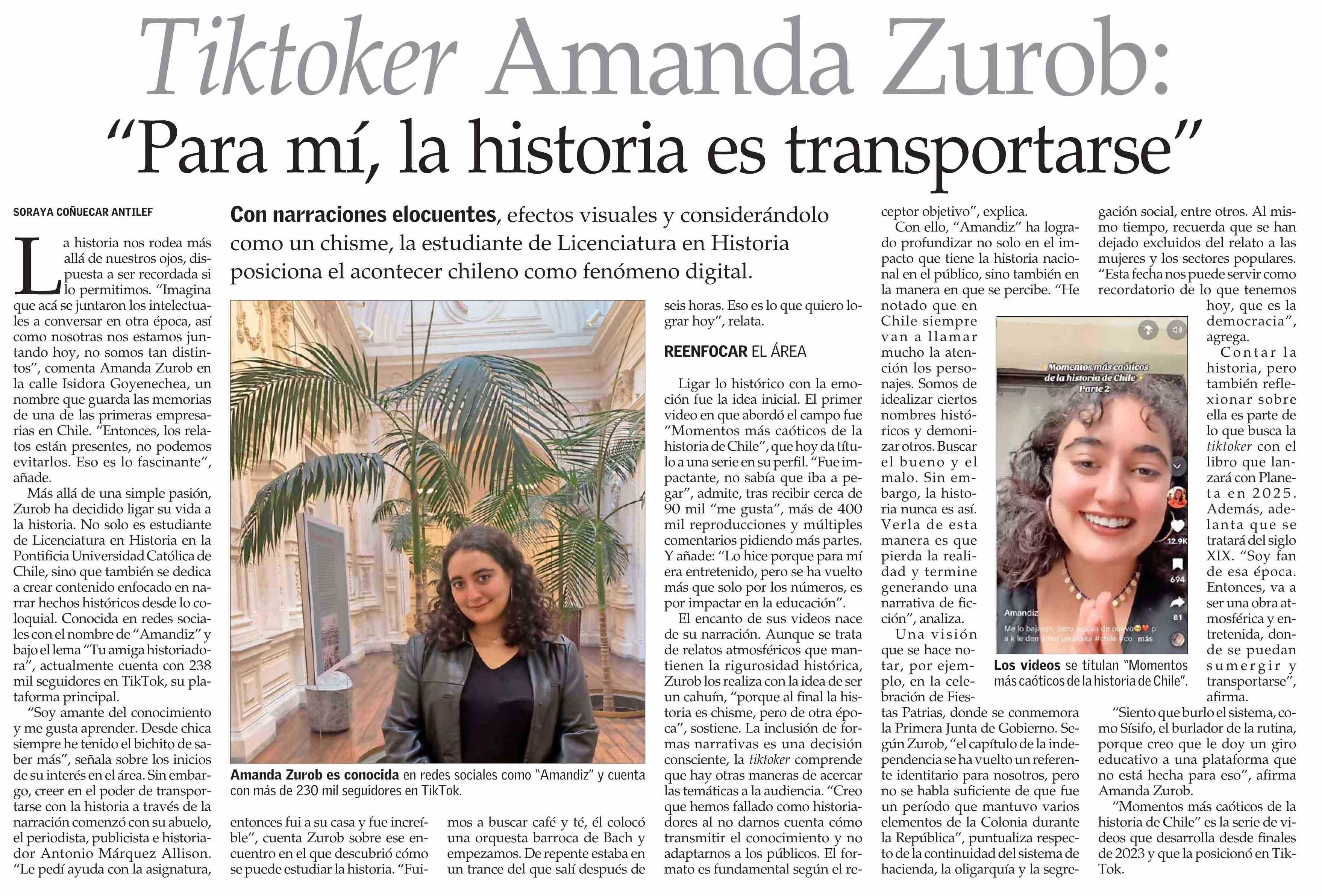 Tiktoker Amanda Zurob: “Para mí, la historia es transportarse”