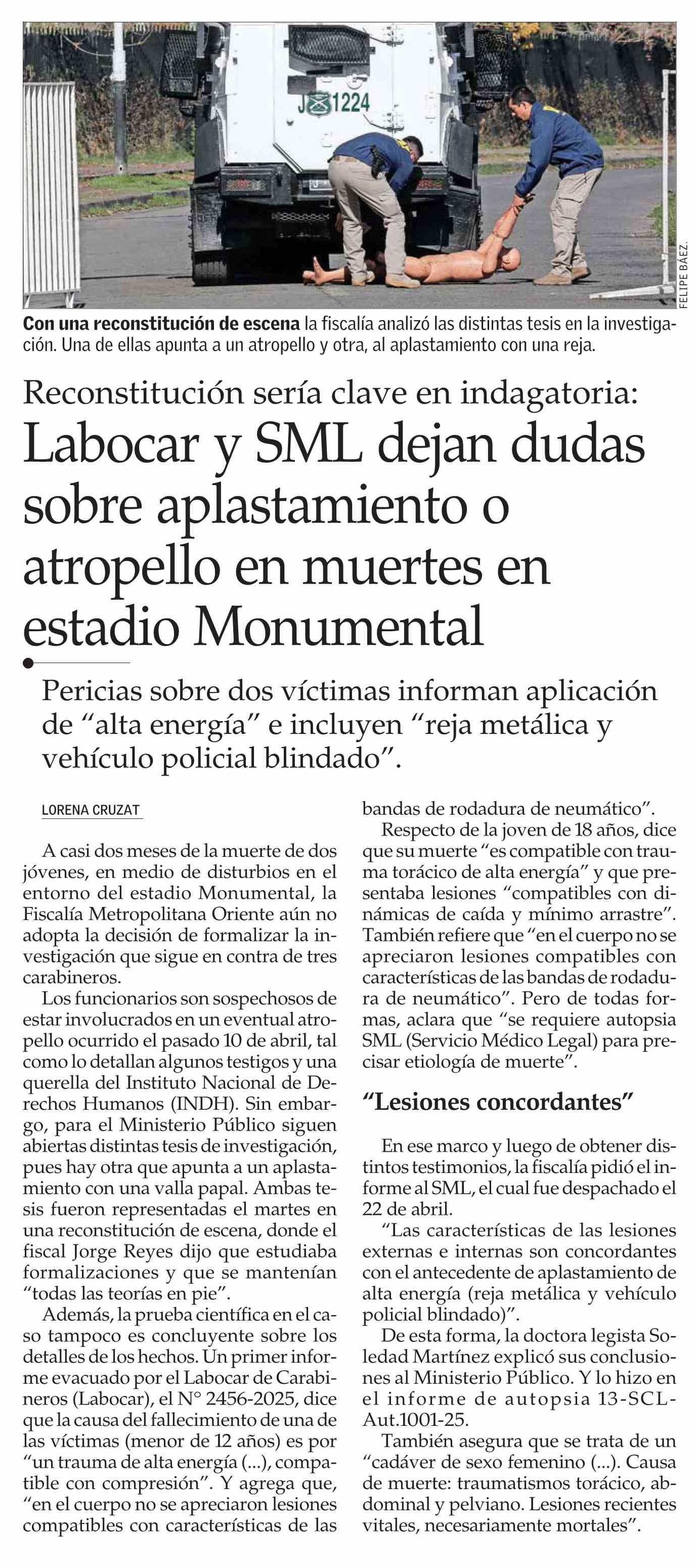 Labocar y SML dejan dudas sobre aplastamiento o atropello en muertes en estadio Monumental
