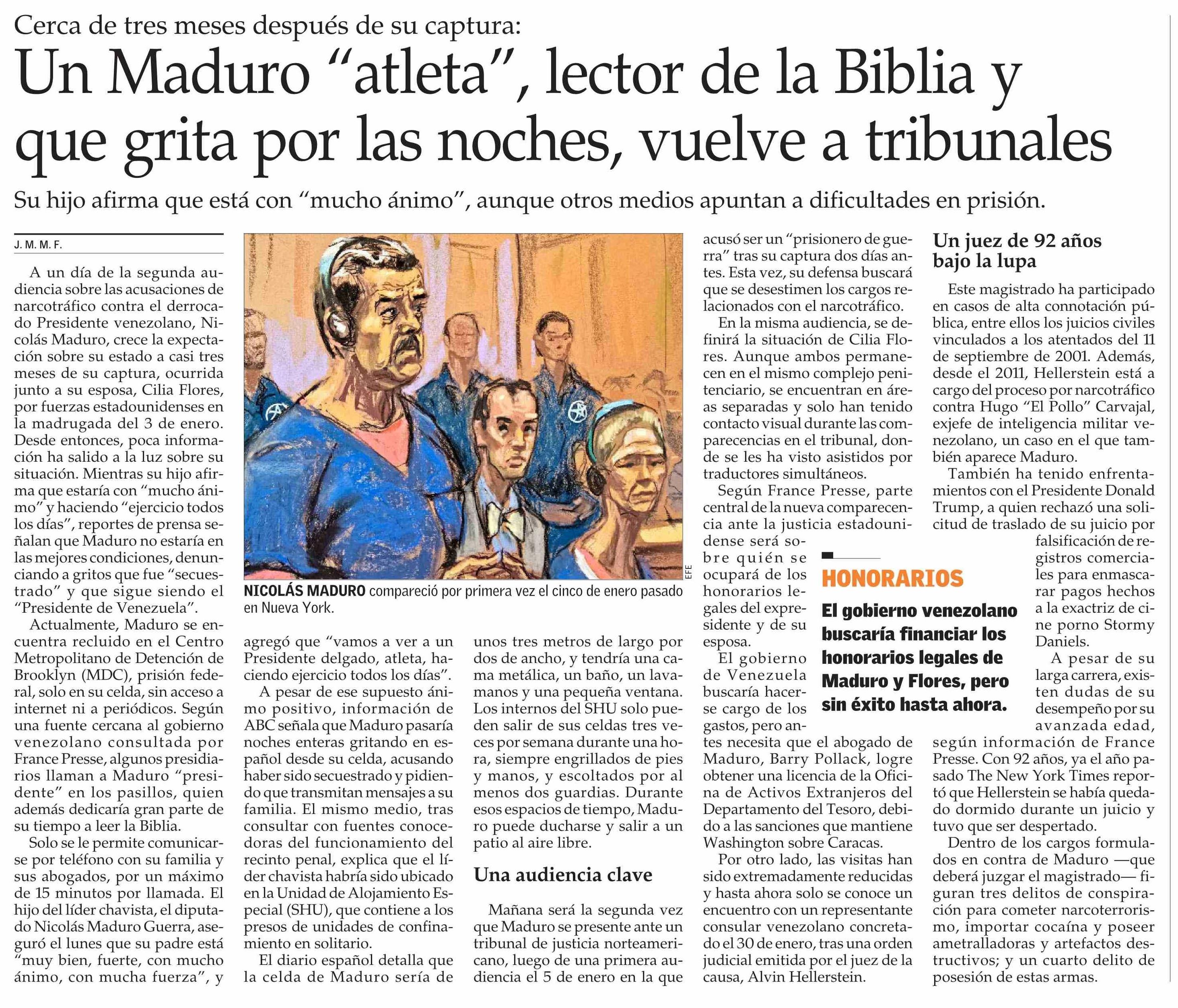 Un Maduro “atleta”, lector de la Biblia y que grita por las noches, vuelve a tribunales