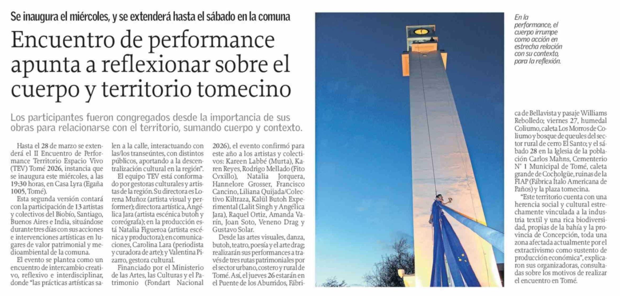 Encuentro de performance apunta a reflexionar sobre el cuerpo y territorio tomecino