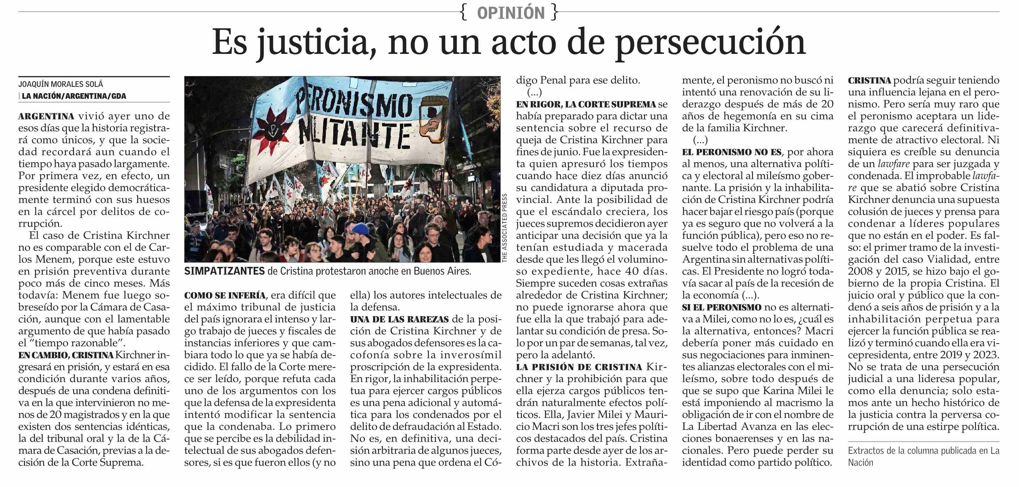 COLUMNAS DE OPINIÓN: Es justicia, no un acto de persecución