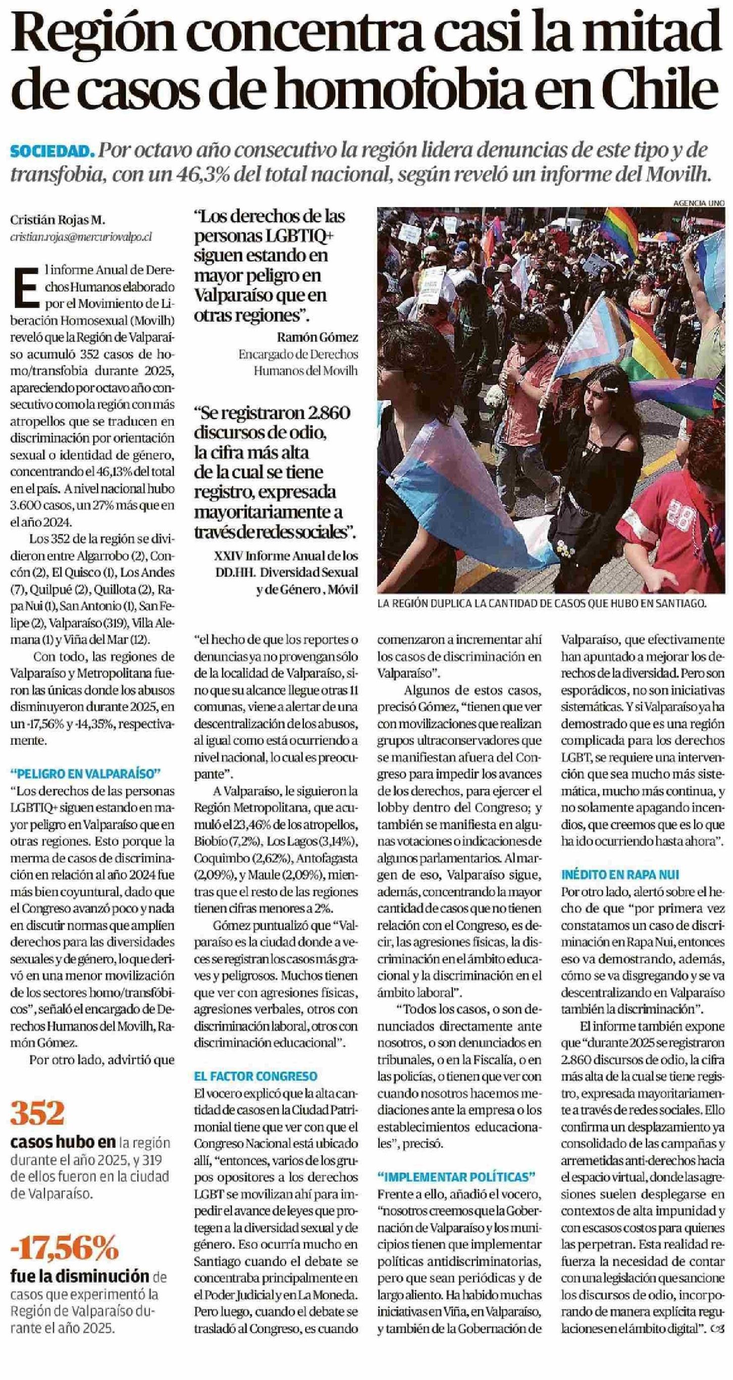 Región concentra casi la mitad de casos de homofobia en Chile