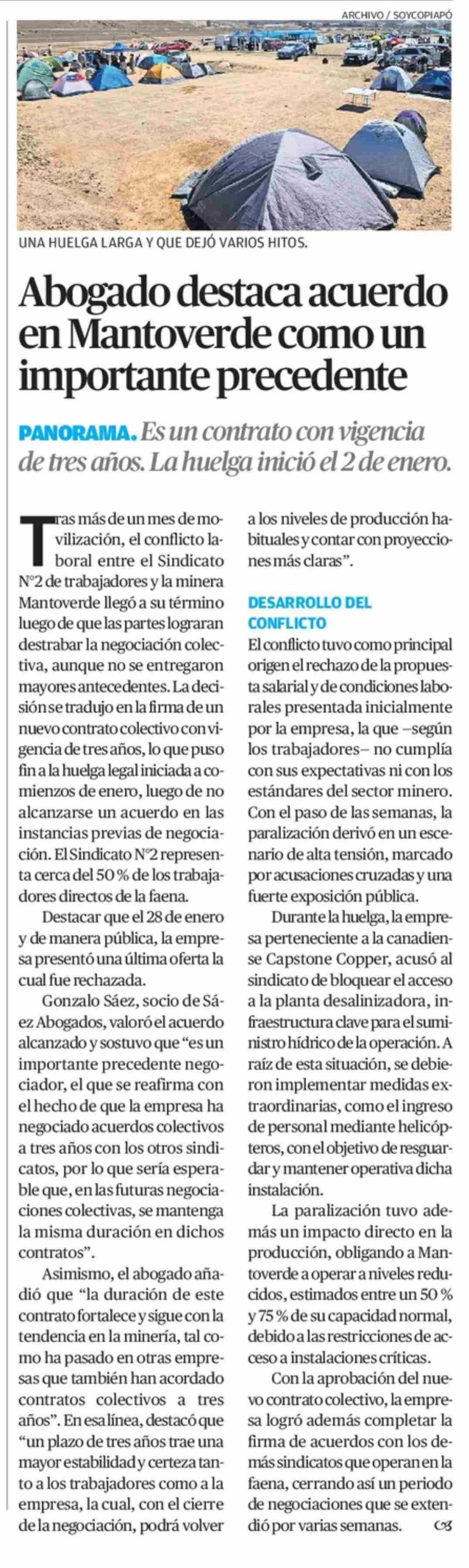 Abogado destaca acuerdo en Mantoverde como un importante precedente