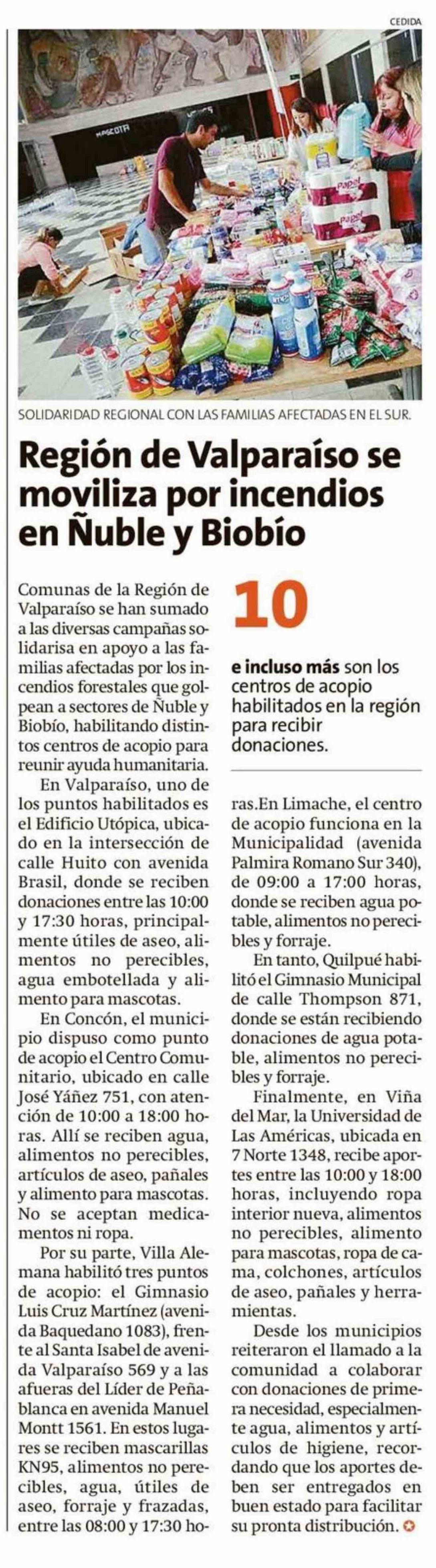 Región de Valparaíso se moviliza por incendios en Ñuble y Biobio