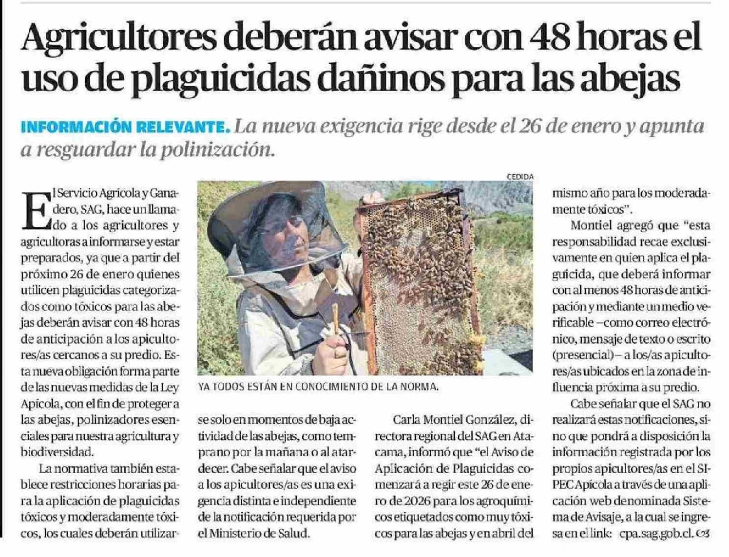 Título: Agricultores deberán avisar con 48 horas el uso de plaguicidas dañinos para las abejas