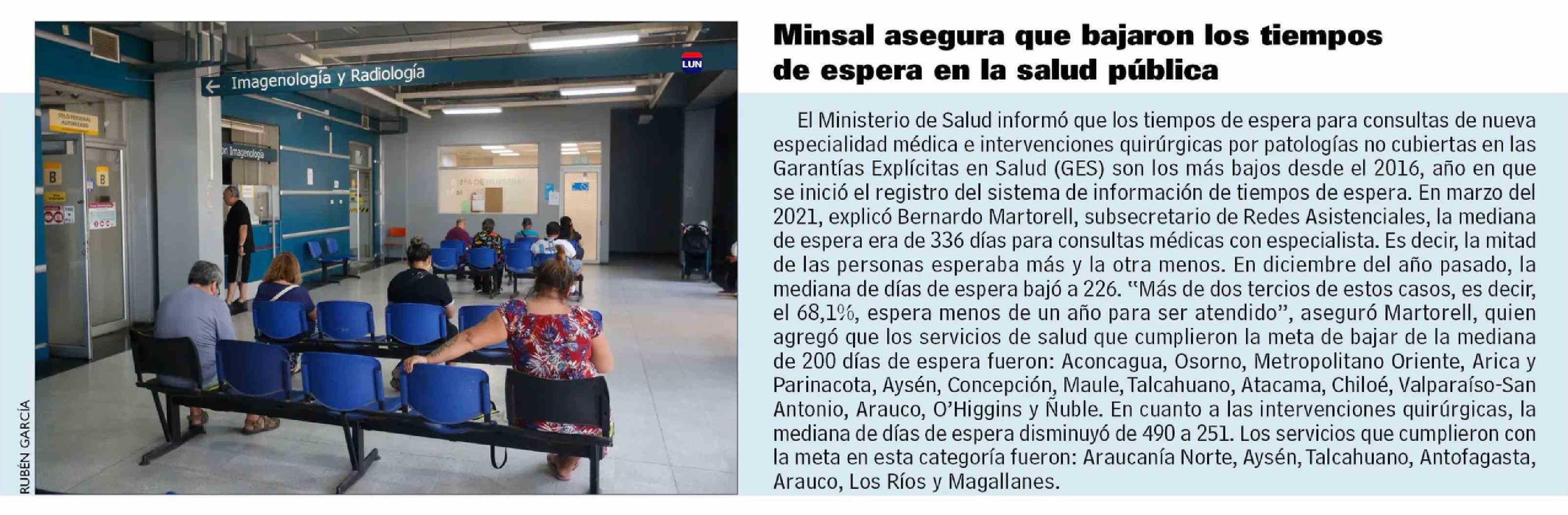 Minsal asegura que bajaron los tiempos de espera en la salud pública