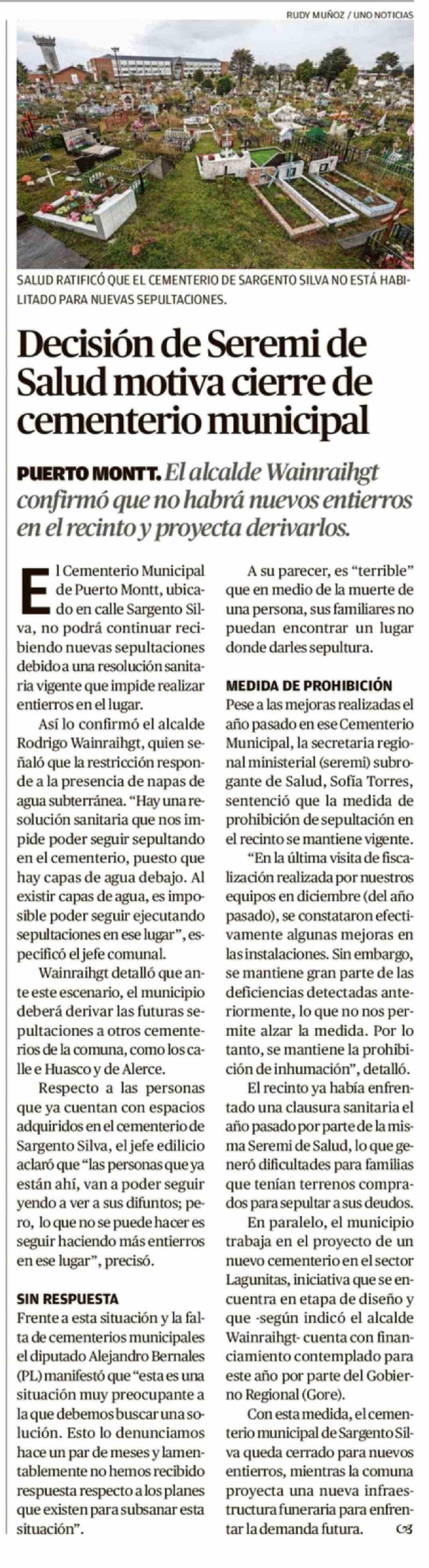 Decisión de Seremi de Salud motiva cierre de cementerio municipal