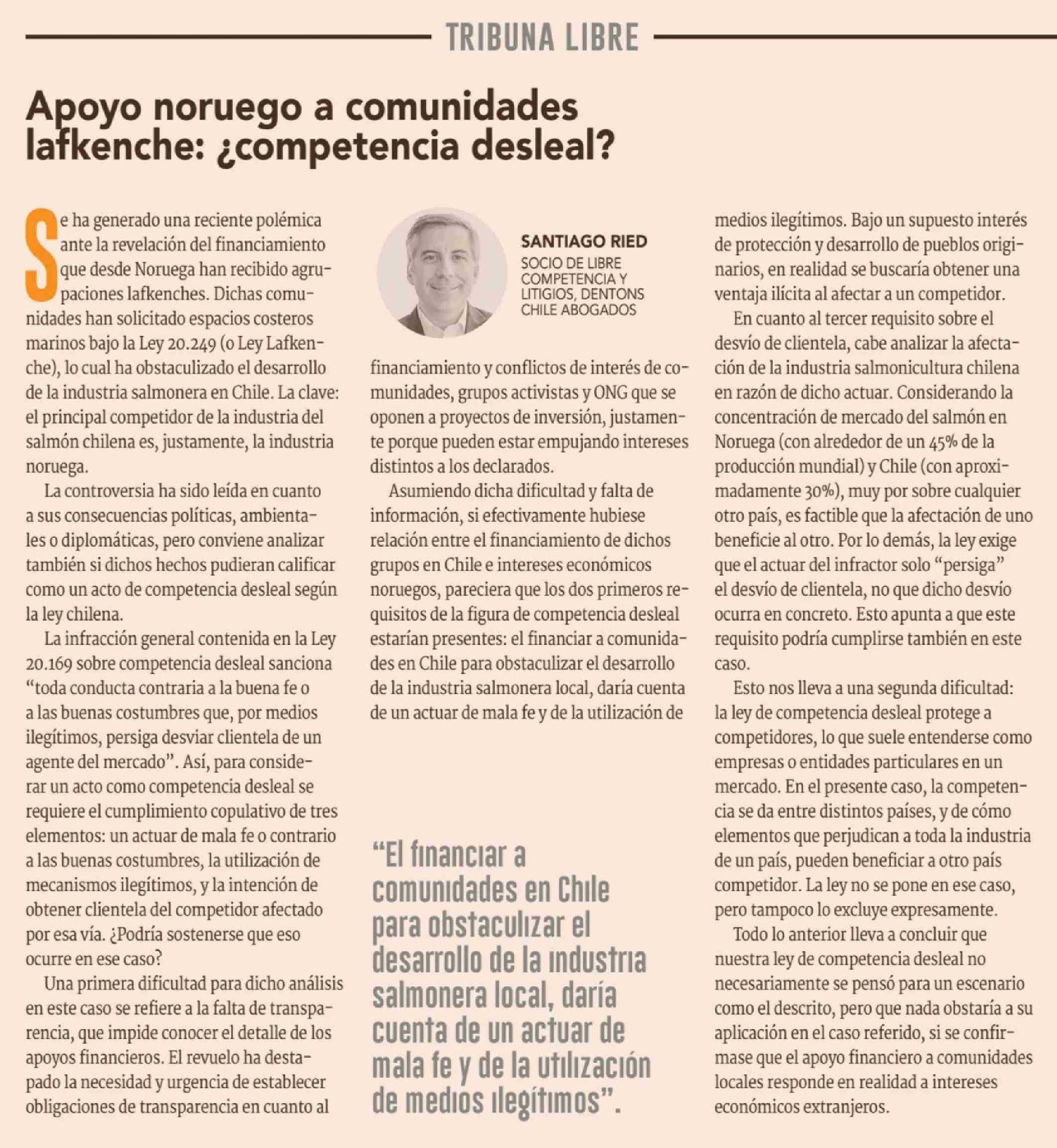 Columnas de Opinión: Apoyo noruego a comunidades lafkenche: ¿ competencia desleal?