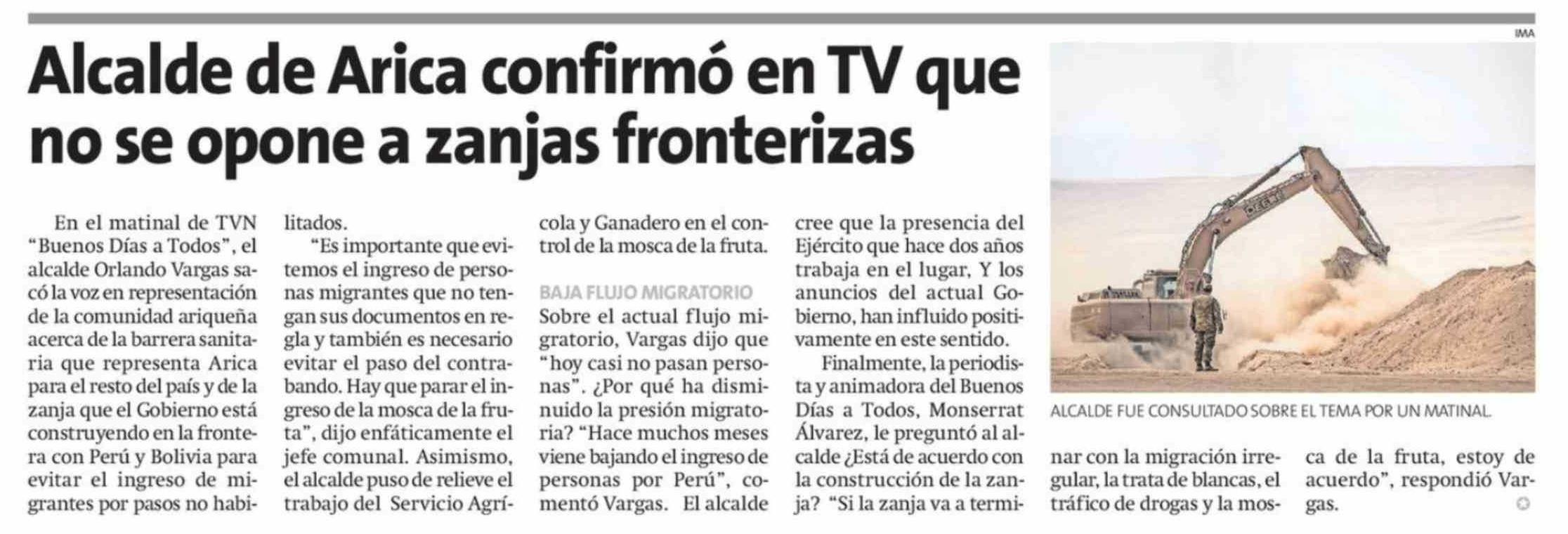 Alcalde de Arica confirmó en TV que no se opone a zanjas fronterizas