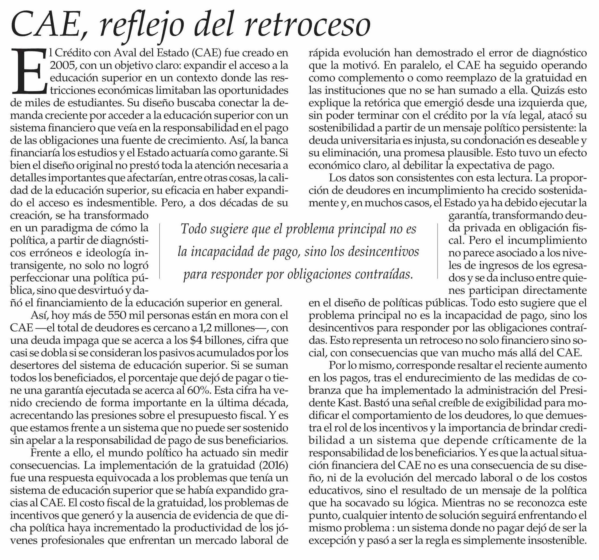 Editorial: CAE, reflejo del retroceso