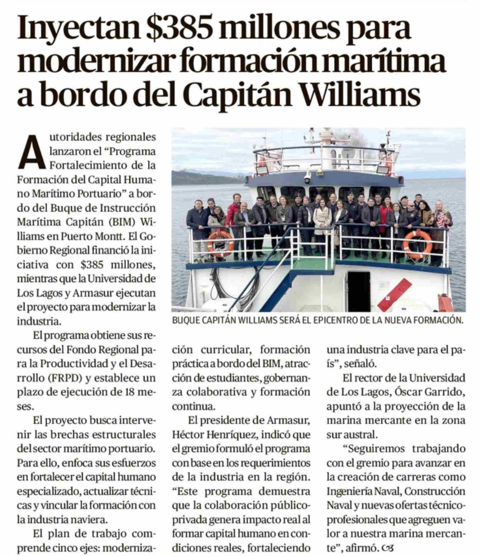 Inyectan $385 millones para modernizar fomiadón marítima a bordo del Capitán Wifliams