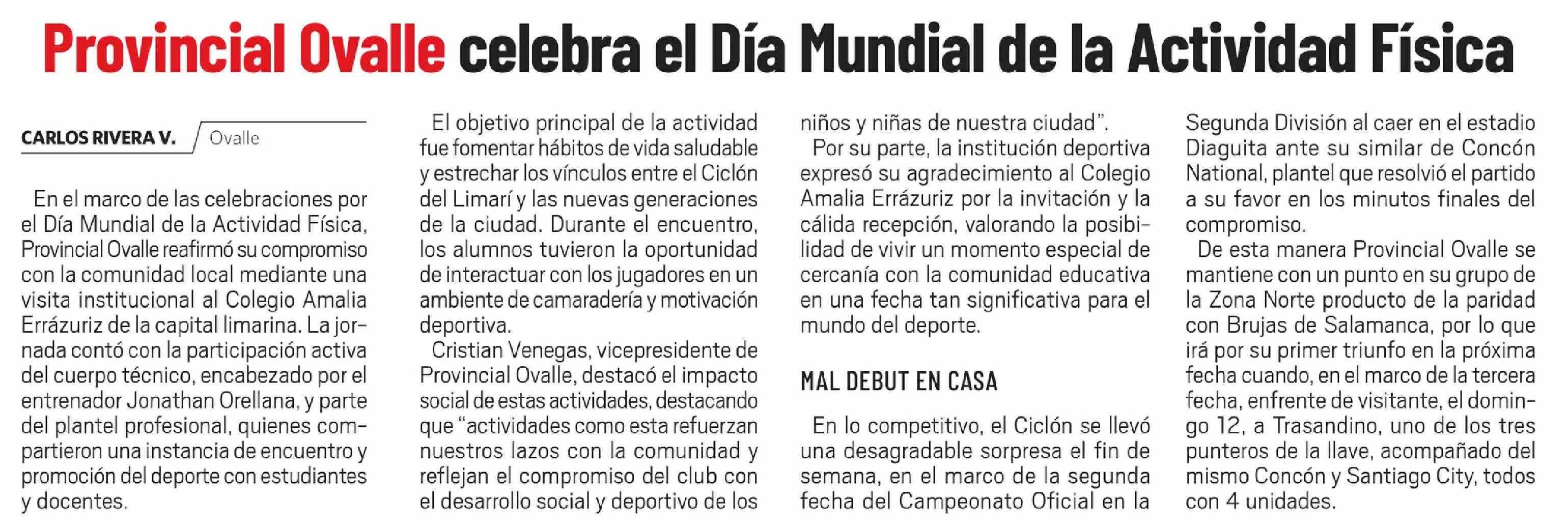 Provincial Ovalle celebra el Día Mundial de la Actividad Física