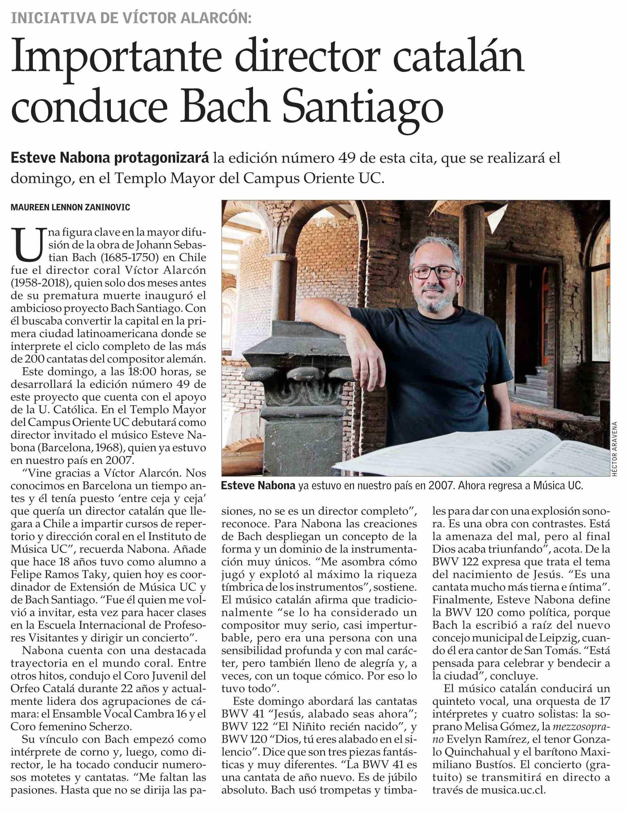 Importante director catalán conduce Bach Santiago