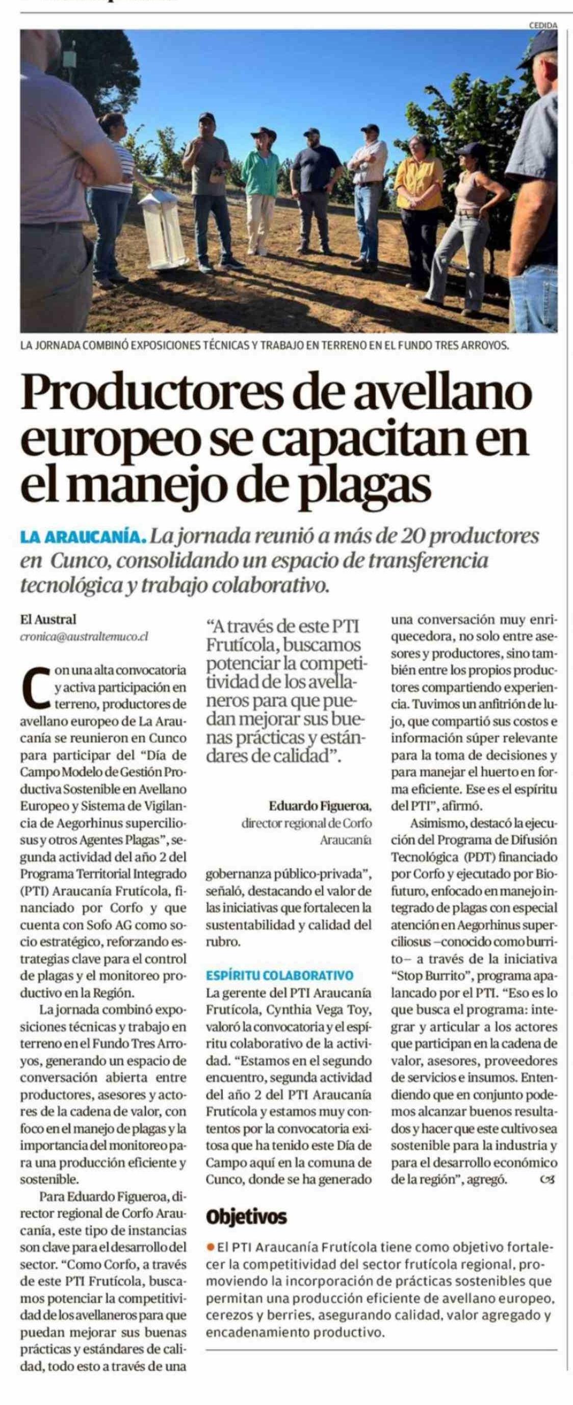 Título: Productores de avellano europeo se capacitan en el manejo de plagas