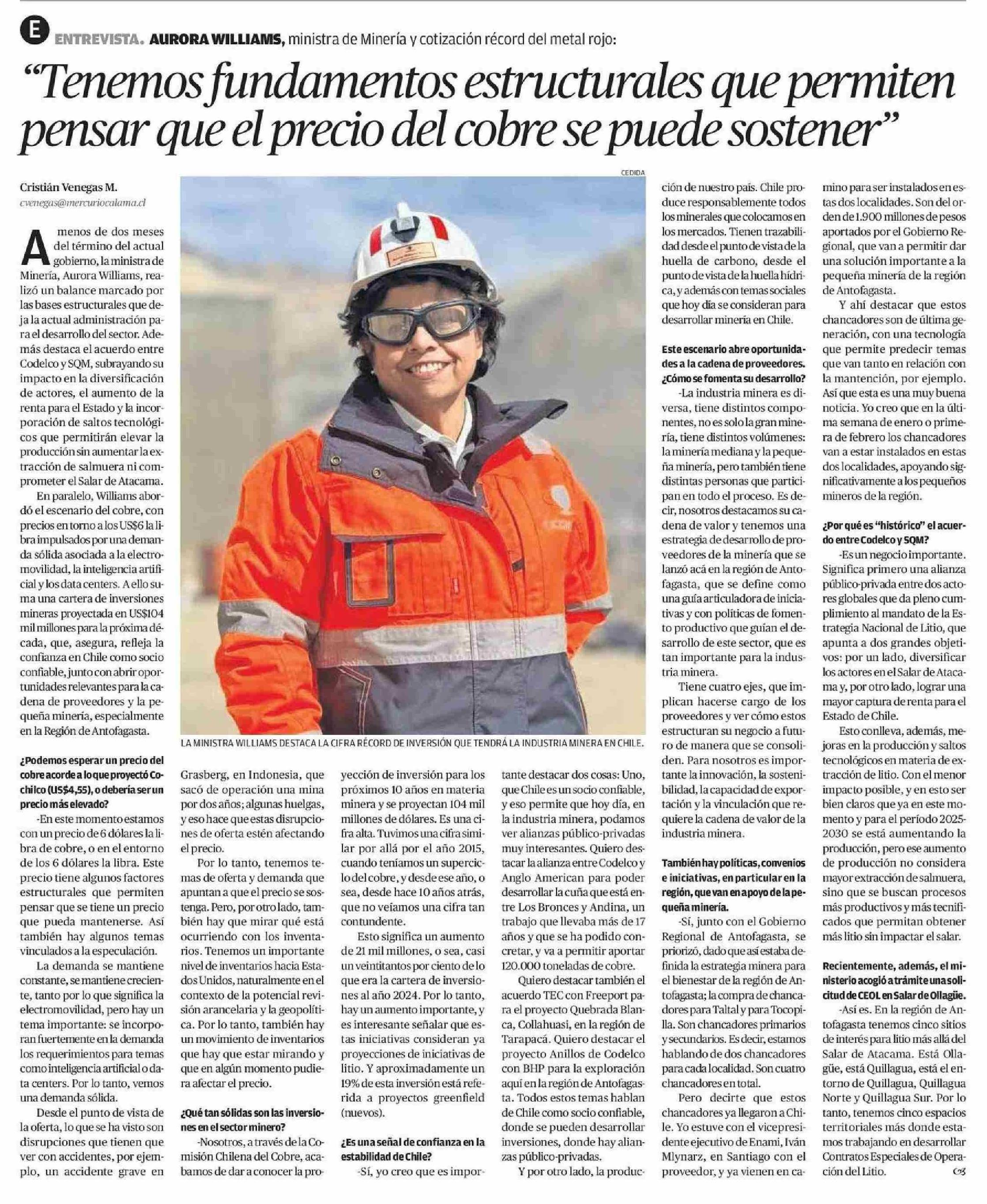 "Tenemos fundamentos estructurales que permiten pensar que el precio del cobre se puede sostener"