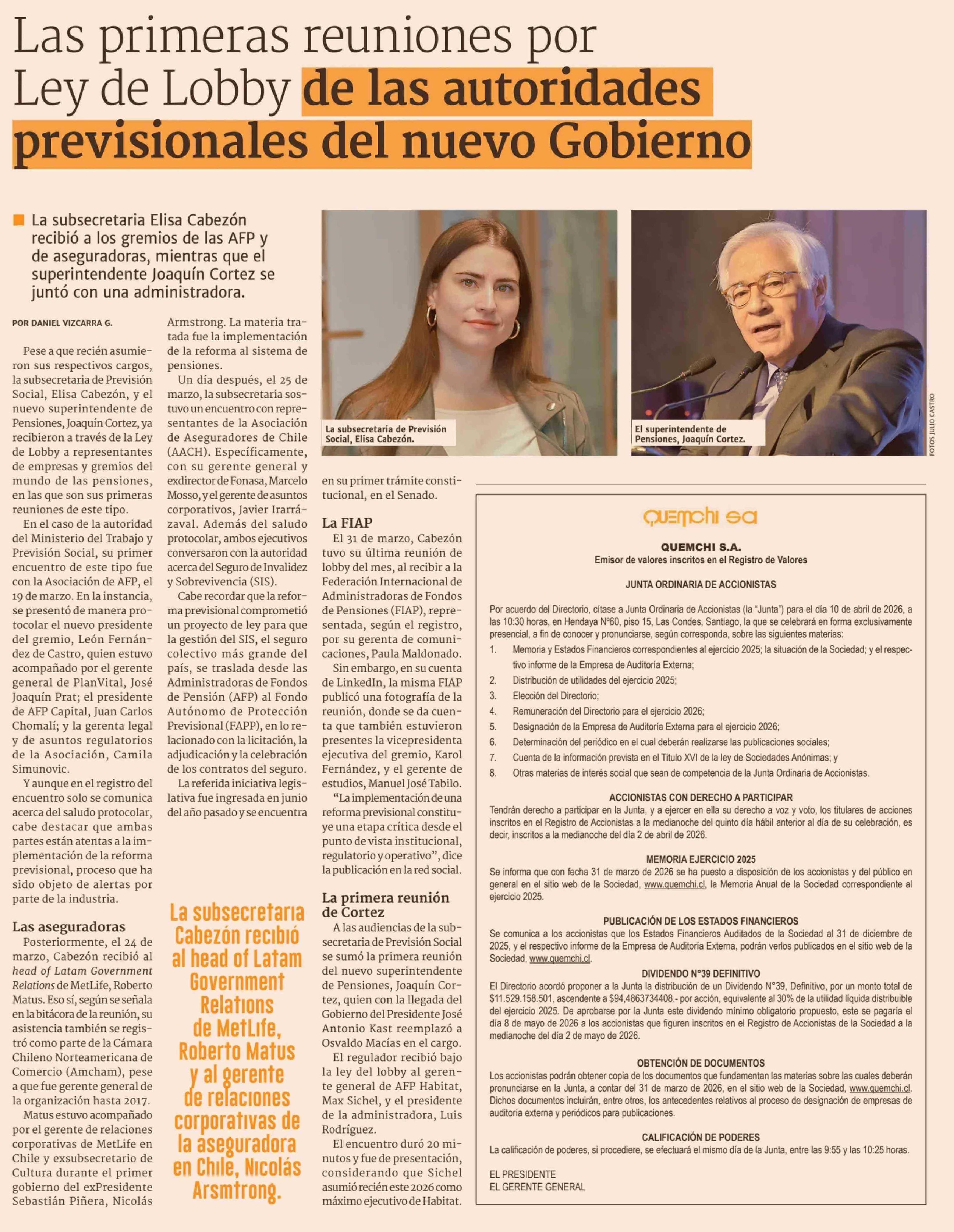 Las primeras reuniones por Ley de Lobby de las autoridades previsionales del nuevo Gobierno