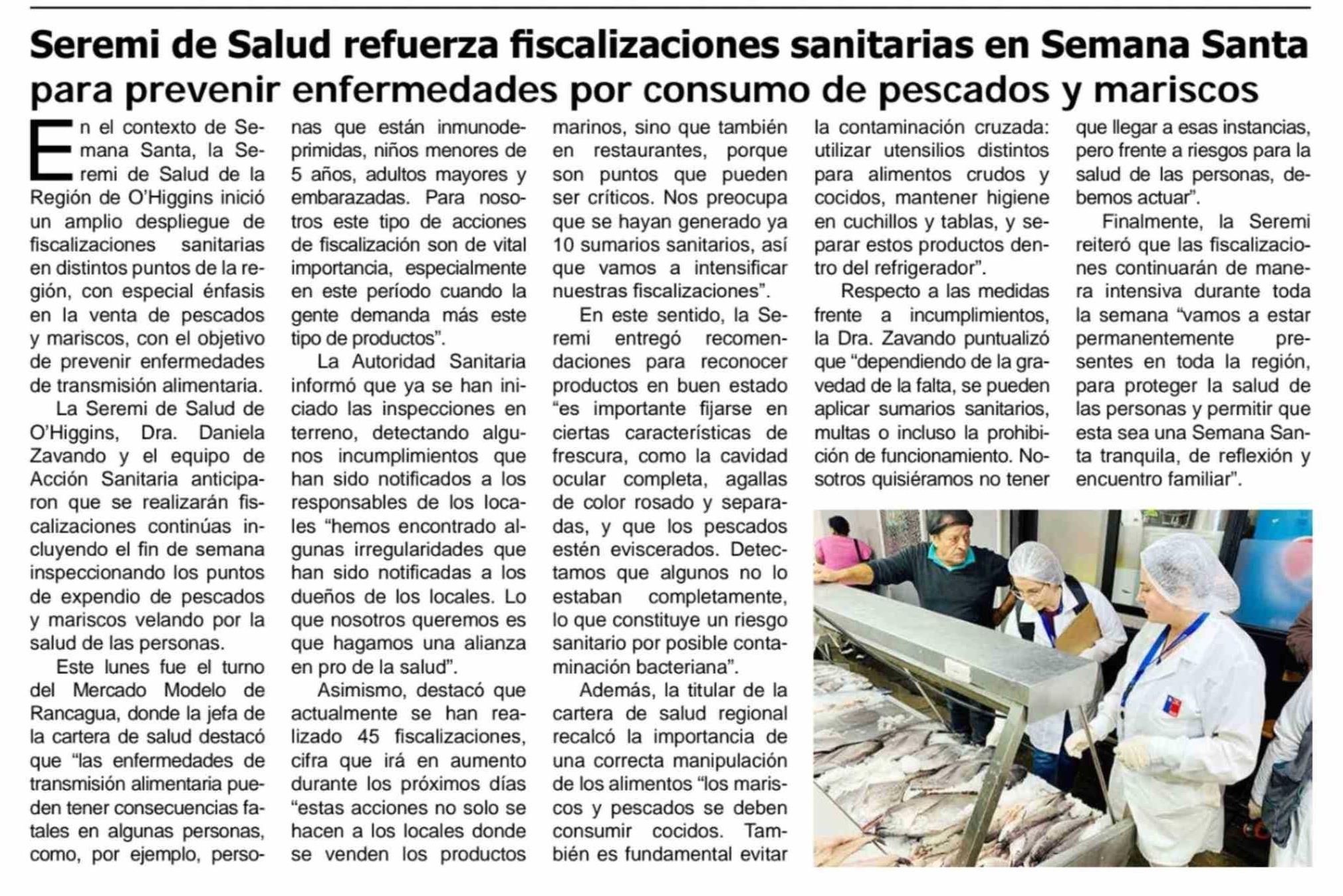 | Título: | Seremi de Salud refuerza fiscalizaciones sanitarias en Semana Santa para prevenir enfermedades por consumo de pescados y mariscos |