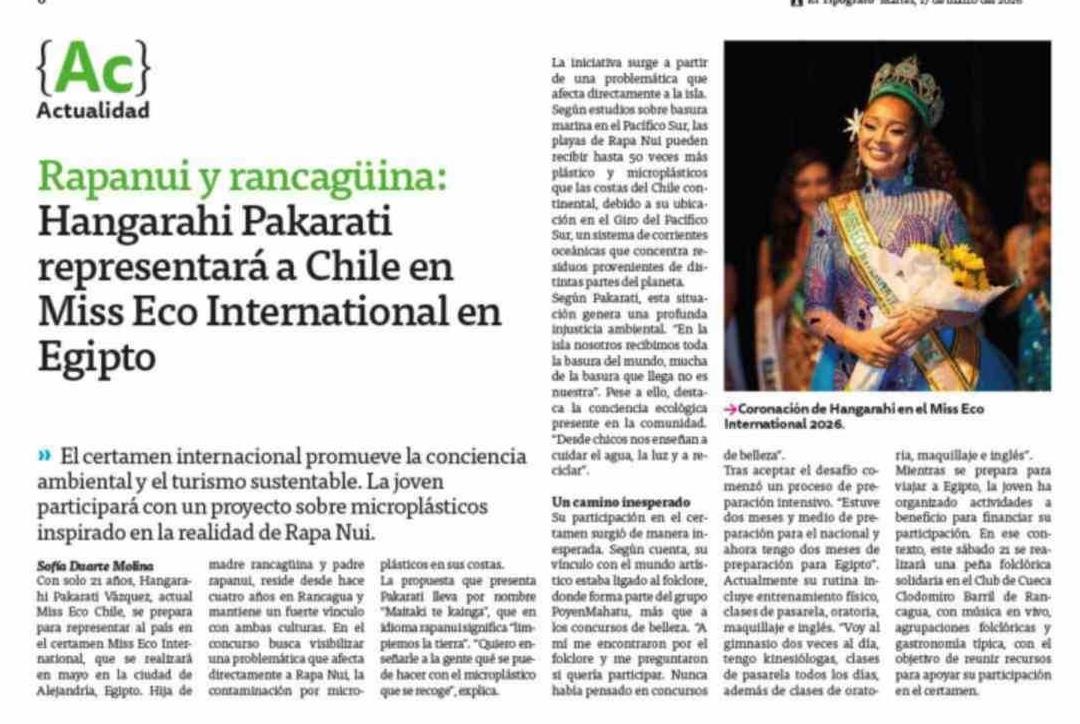 Rapanui y rancagüina: Hangarahi Pakarati representará a Chile en Miss Eco International en Egipto