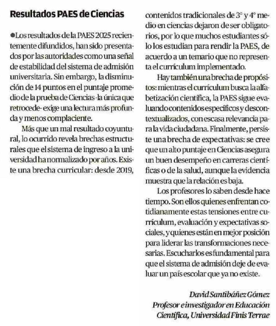 Cartas: Resultados PAES de Ciencias