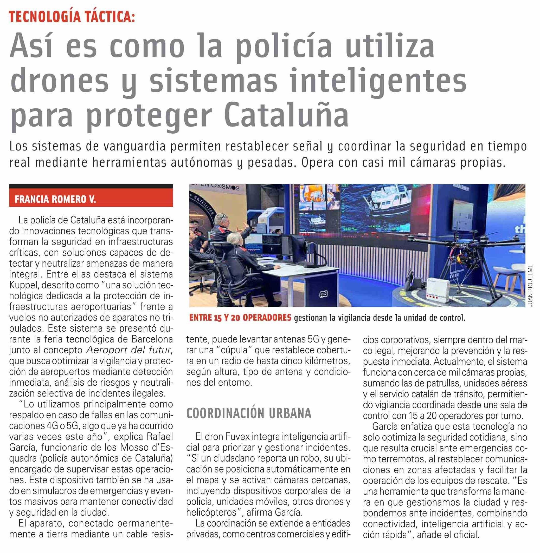 Título: Así es como la policía utiliza drones y sistemas inteligentes para proteger Cataluña