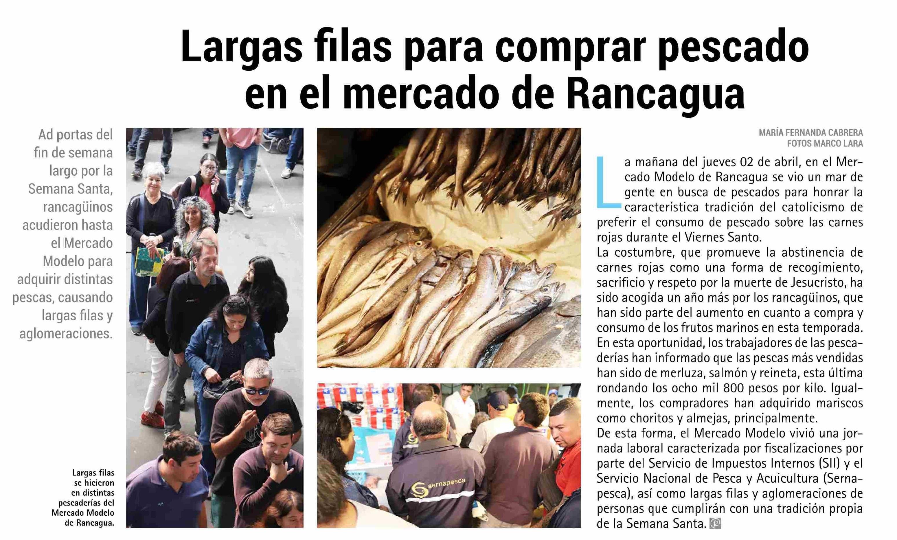 Largas filas para comprar pescado en el mercado de Rancaqua