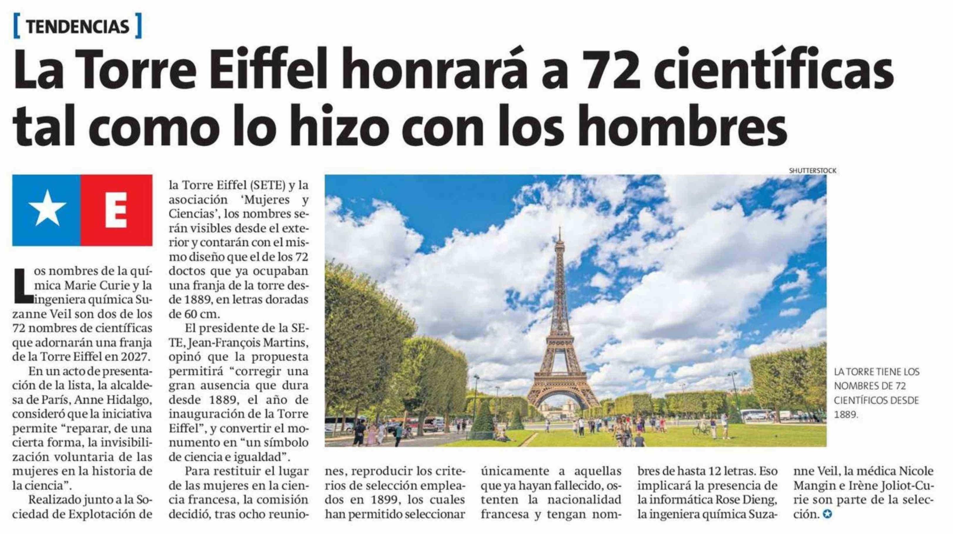 La Torre Eiffel honrará a 72 científicas tal como lo hizo con los hombres