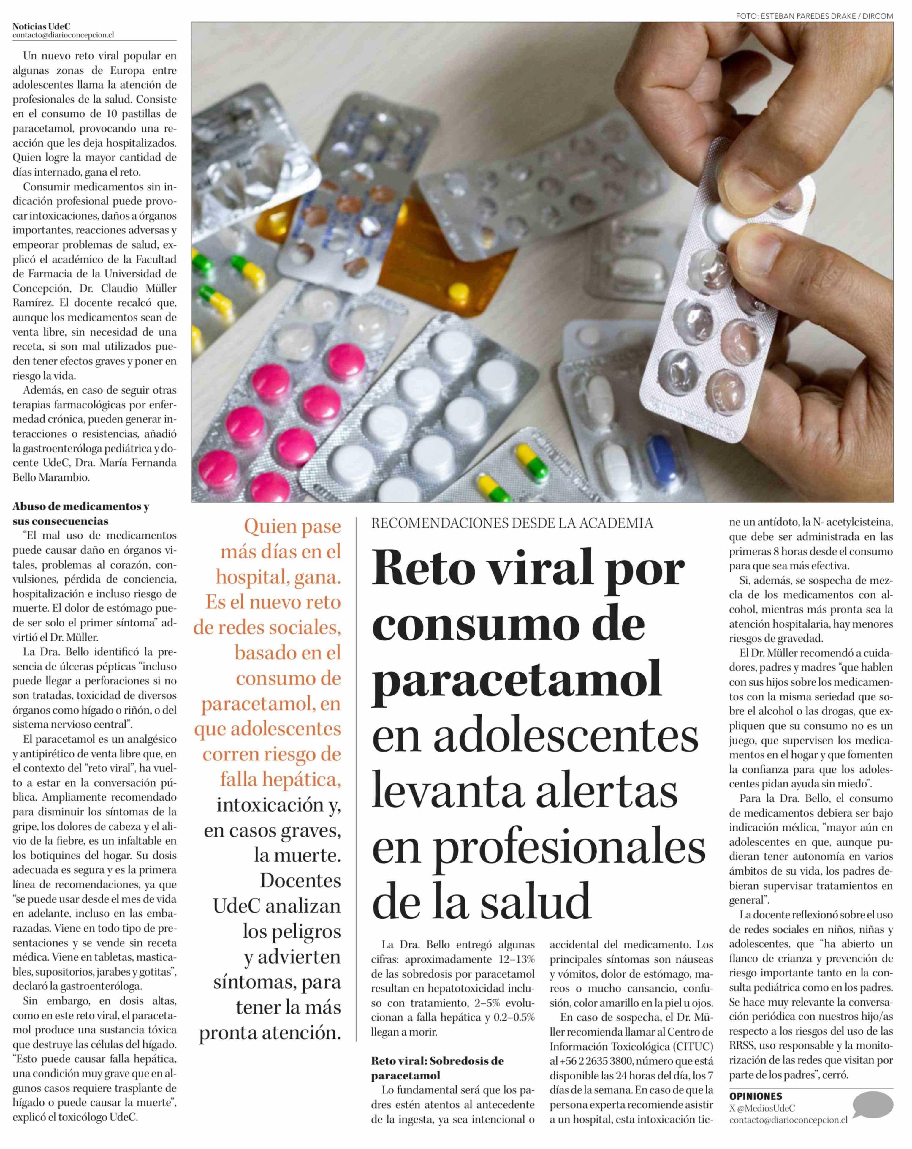 Título: Reto viral por consumo de paracetamol en adolescentes levanta alertas en profesionales de la salud