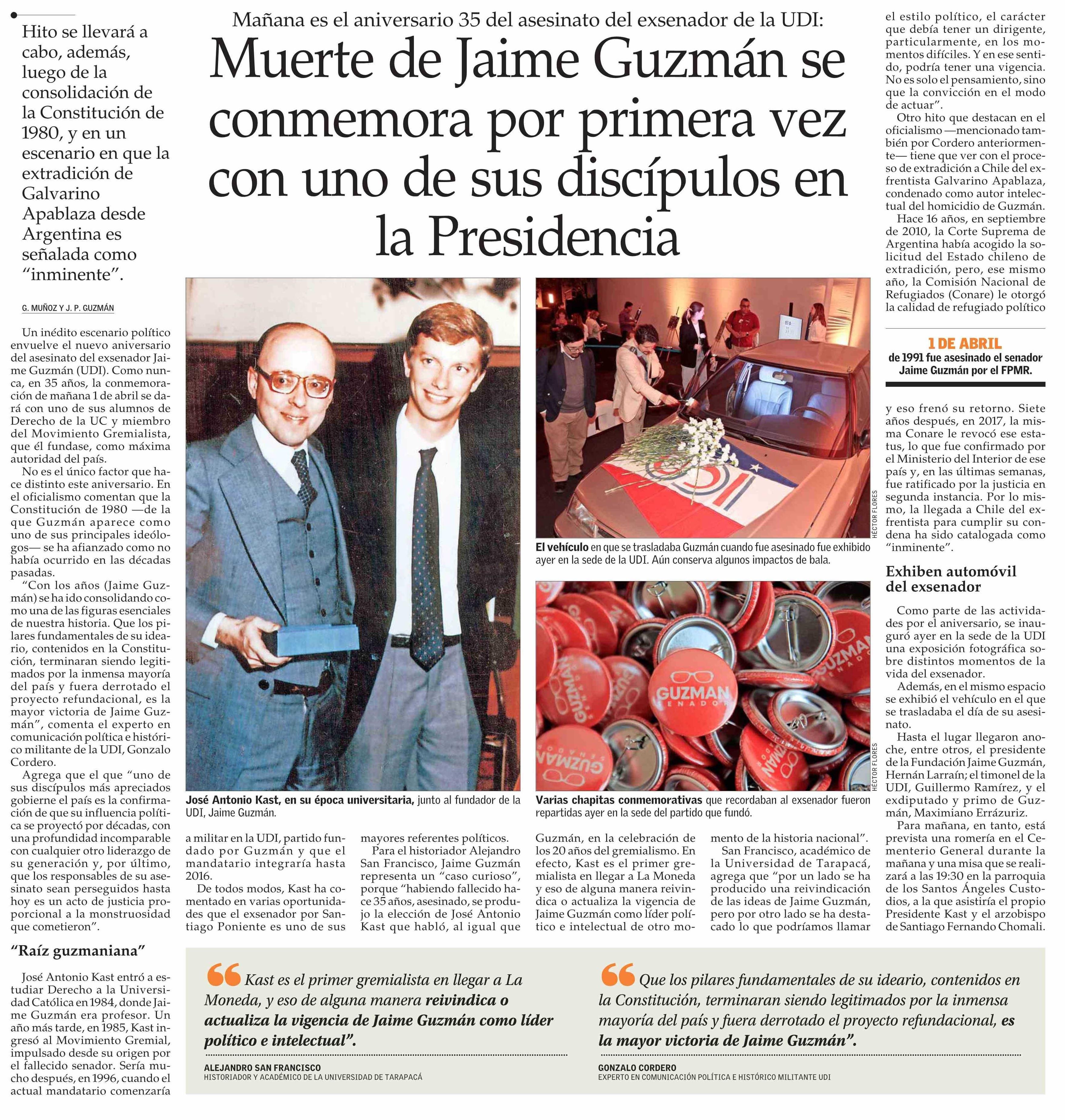 Muerte de Jaime Guzmán se conmemora por primera vez con uno de sus discípulos en la Presidencia
