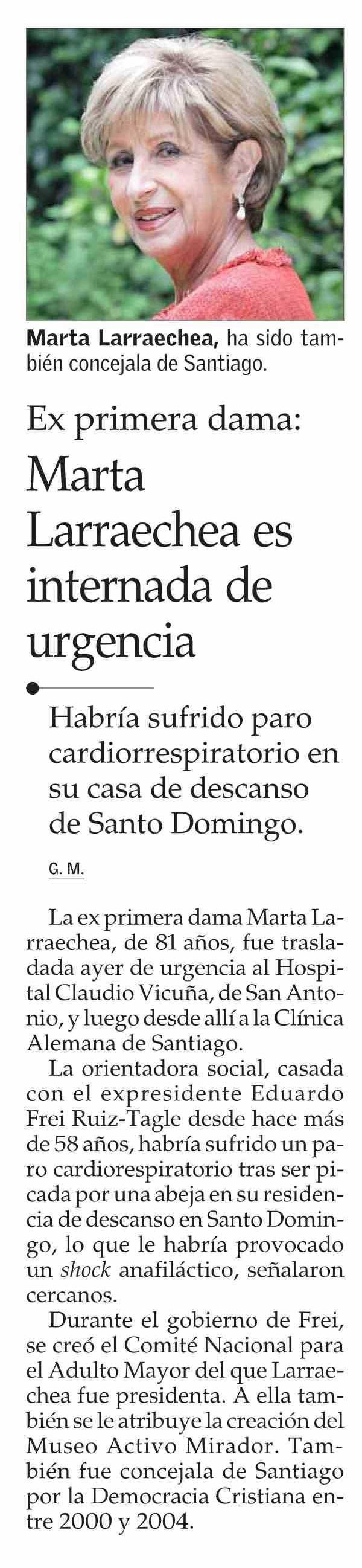 Ex primera dama: Marta Larraechea es internada de urgencia