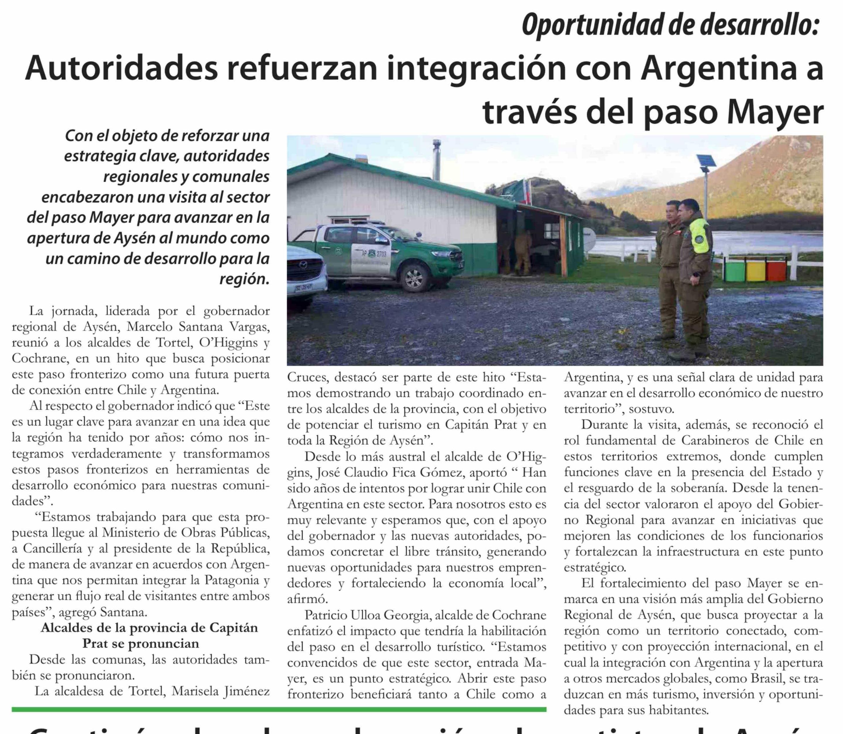 Autoridades refuerzan integración con Argentina a través del paso Mayer