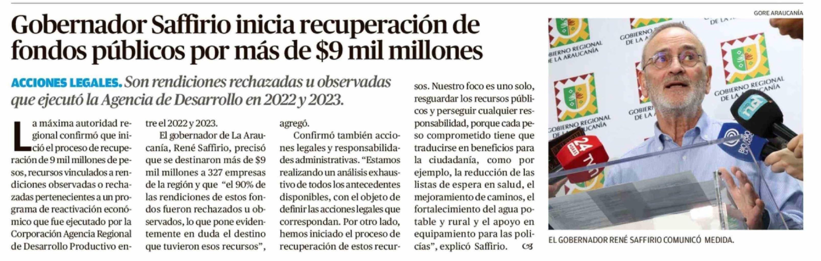 Gobernador Saffirio inicia recuperación de fondos públicos por más de $9 mil millones