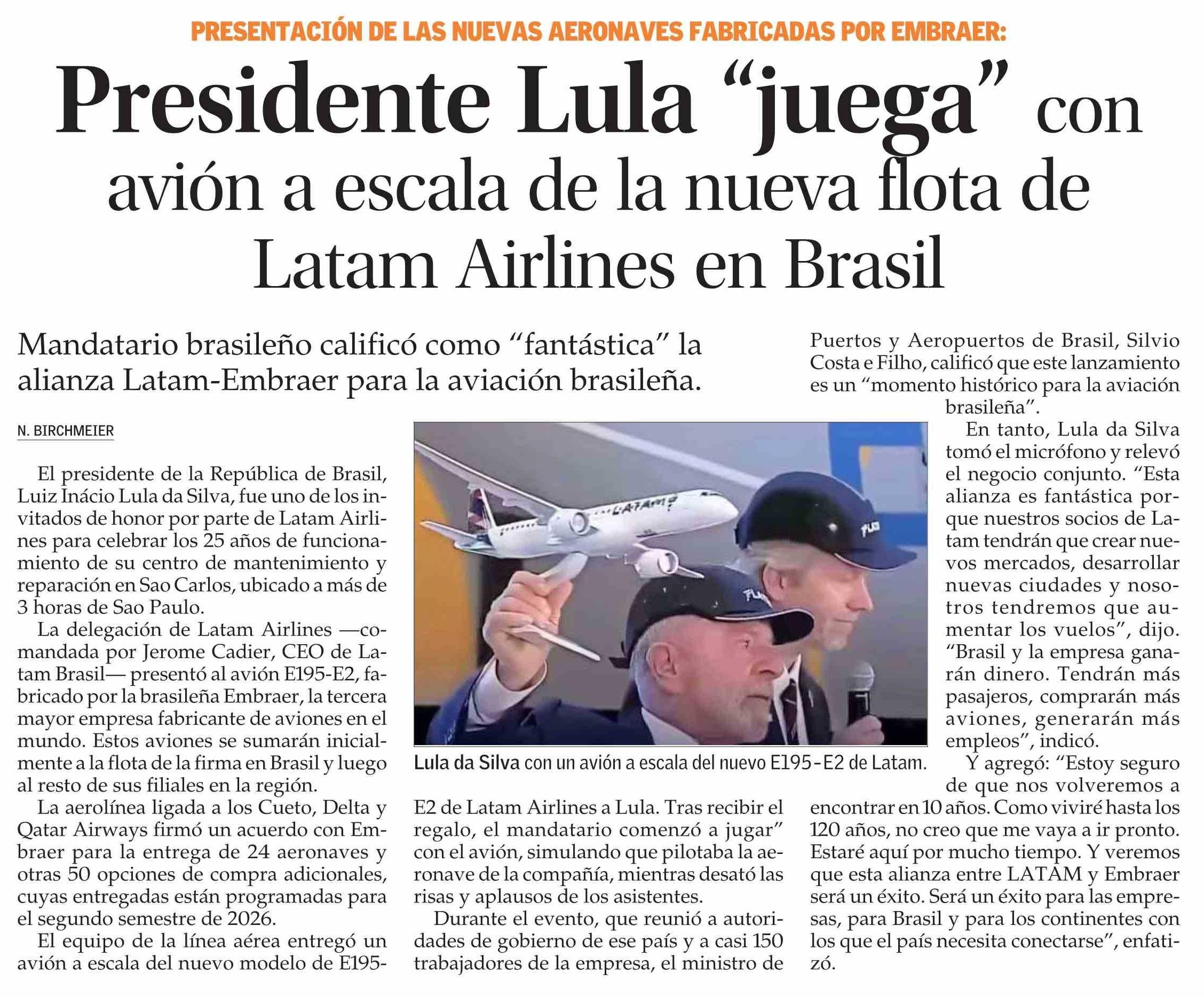 Presidente Lula “juega” con avión a escala de la nueva flota de Latam Airlines en Brasil