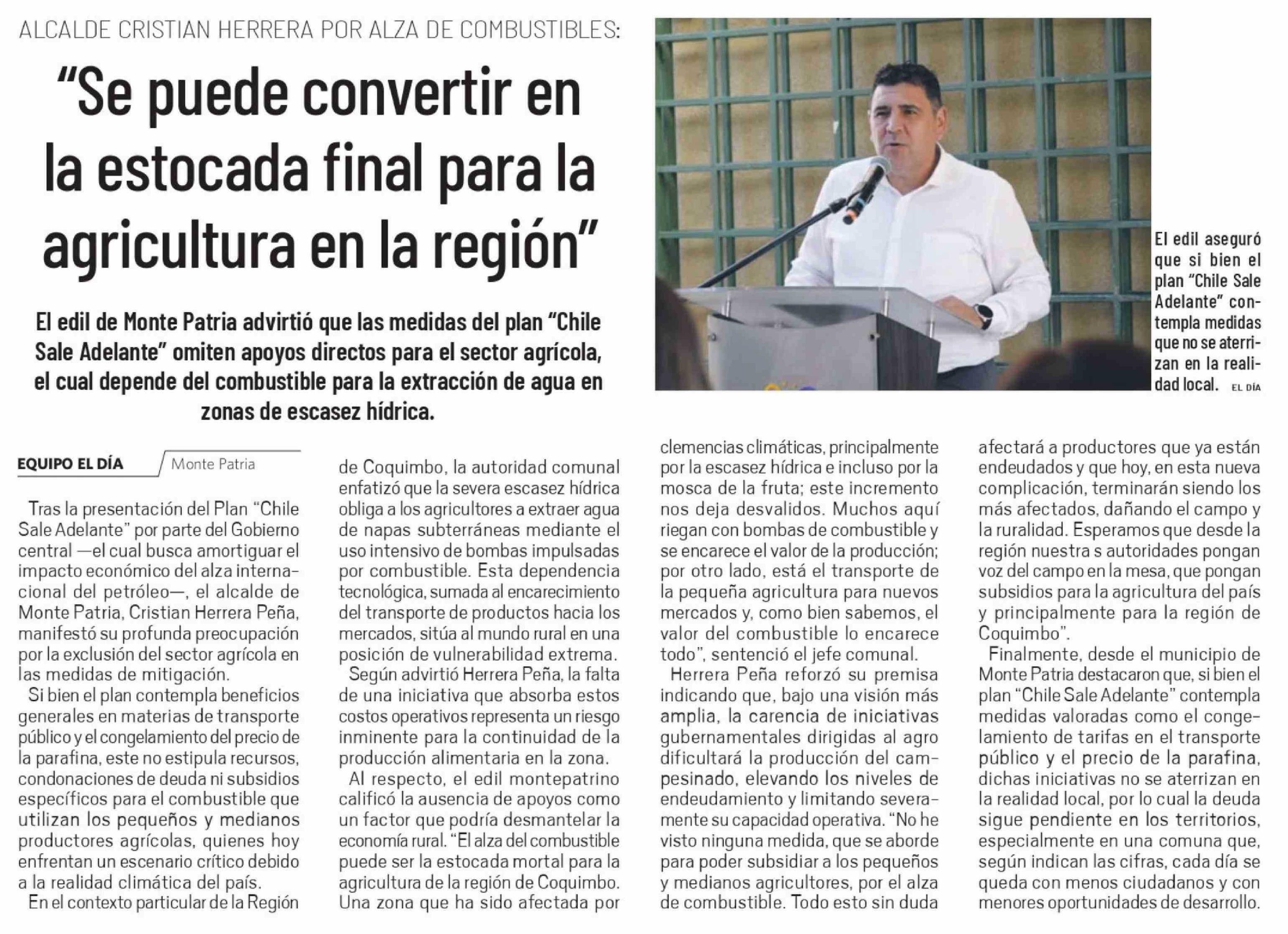 Título: "Se puede convertir en la estocada final para la agricultura en la región"